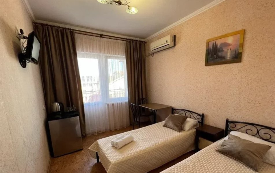 Мини-отель расположен в самом курортном районе города Саки, на территории базы отдыха «Прибой». Здесь созданы все условия для максимально яркого и комфортного пляжного отдыха: