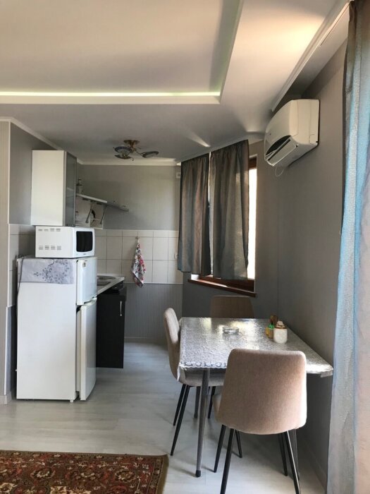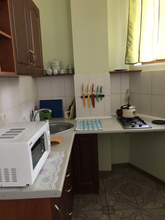 Апартаменты укомплектованы всем необходимым: кухня, отопление, стиральная машина, микроволновая печь, телевизор, кондиционер.