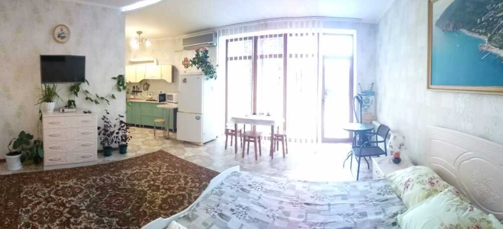 Уютные апартаменты на 1 этаже на земле с выходом во дворик, удобно посидеть на улице, можно пожарить шашлык. Балкон открытый большой.
