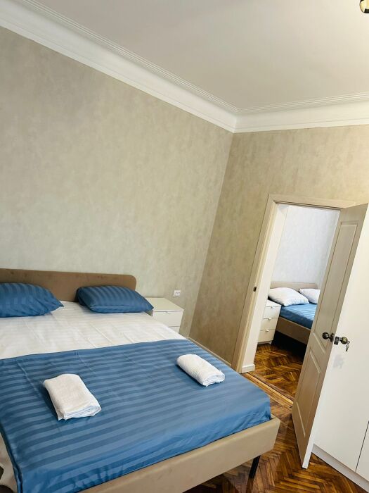 В доме есть все необходимые удобствами: три комнаты, одна из которых оборудована выдвижным диваном для двух дополнительных гостей, стиральная машина, холодильник, кухня полностью оборудована всем необходимым для самостоятельного приготовления пищи, микроволновая печь, газовая плита, гладильные принадлежности, телевизор, вайфай, кондиционеры в каждой комнате, санузел, душ. Во дворе есть беседка и мангал, где можно провести время на свежем воздухе, качели.