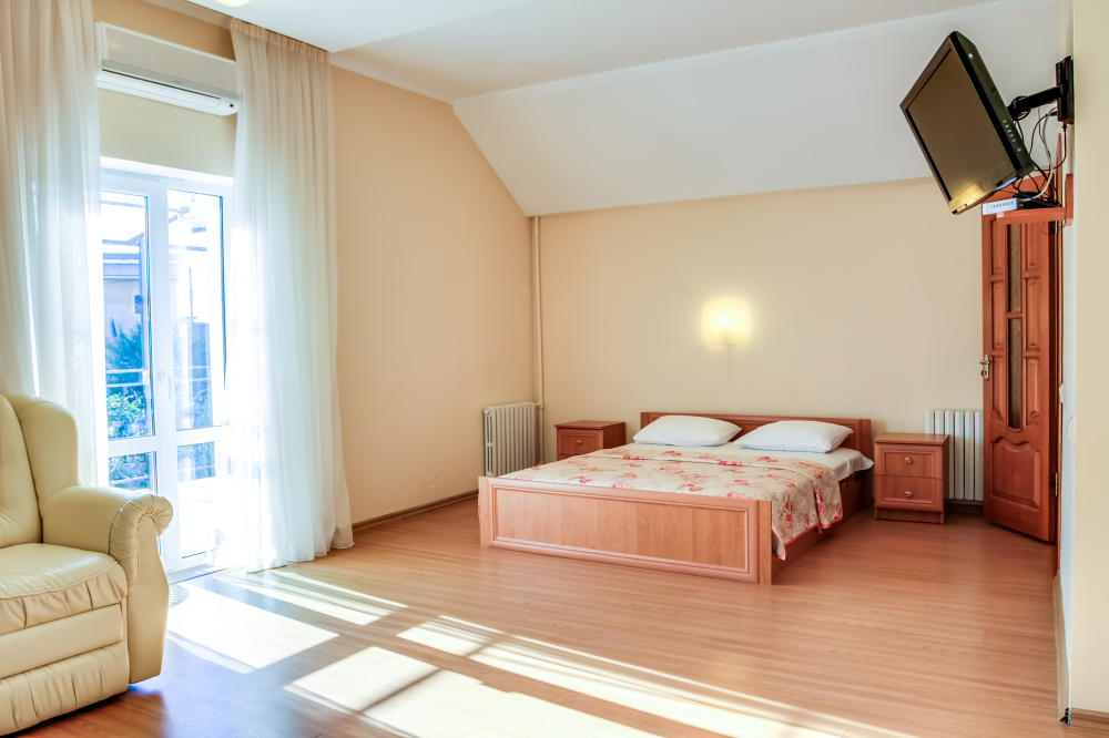 Гостям, для проживания, предлагаются уютные номера разных категорий и вместимости, со всем необходимым для комфортного отдыха.