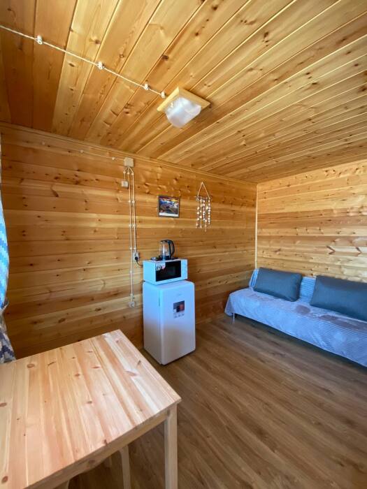 Комфортабельные отдельно стоящие домики со всеми удобствами. Кондиционер, холодильник, микроволновка, чайник.