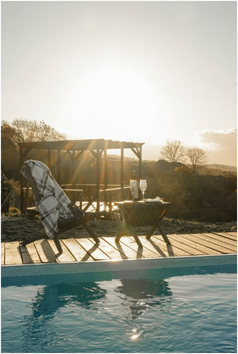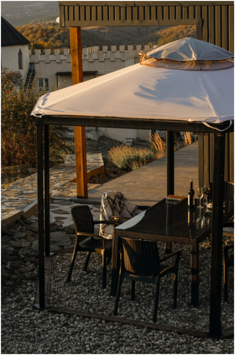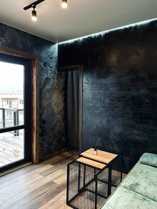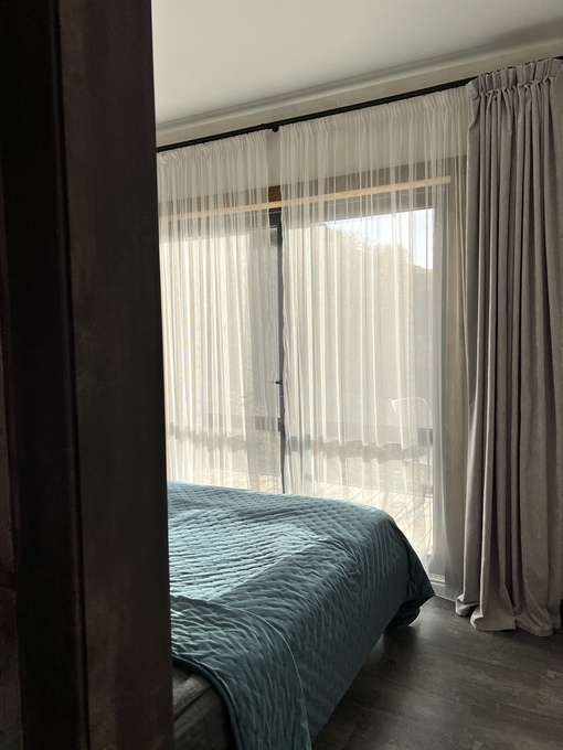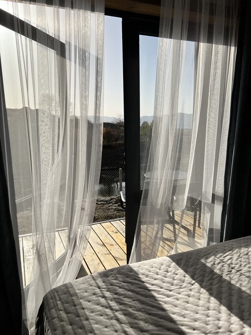 Вместительный двухкомнатный домик с новейшим стильным дизайном. В первой комнате Вас ждет мини кухня со всем необходимым для приготовления завтрака обеда и ужина, а так же удобный диван и журнальный столик для отдыха. Вторая комната - спальная зона с большой двухместной кроватью и выходом на террасу.