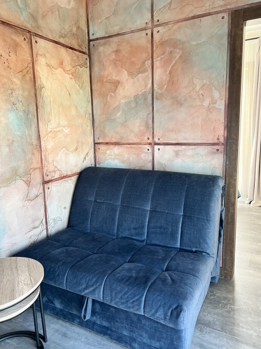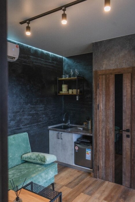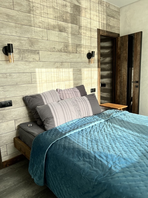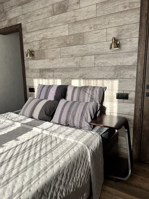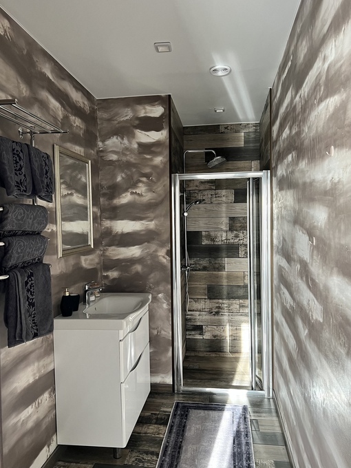 Вместительный двухкомнатный домик с новейшим стильным дизайном. В первой комнате Вас ждет мини кухня со всем необходимым для приготовления завтрака обеда и ужина, а так же удобный диван и журнальный столик для отдыха. Вторая комната - спальная зона с большой двухместной кроватью.