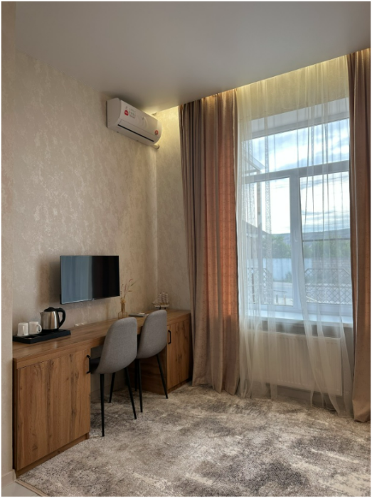 В гостинице 29 комфортабельных номеров различных категорий: от стандарта до люкс. Во всех номерах к услугам гостей бесплатный беспроводной интернет, спутниковое телевидение, холодильник, фен, ванная комната, кондиционер.