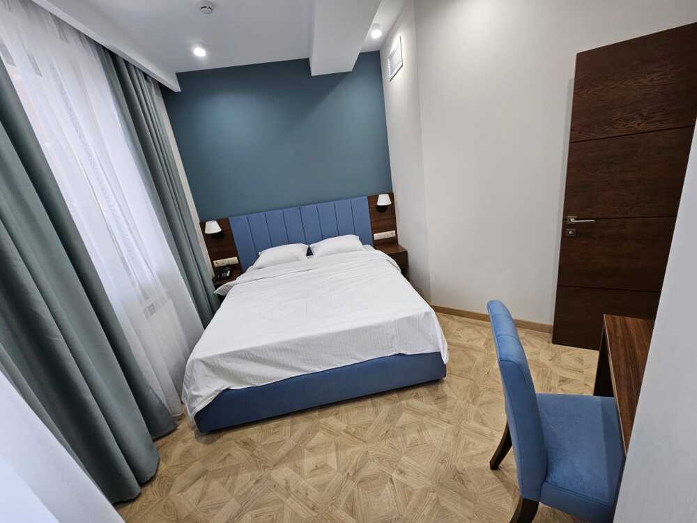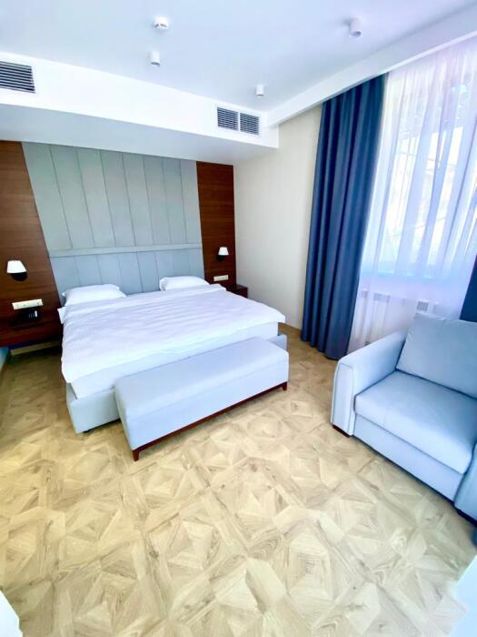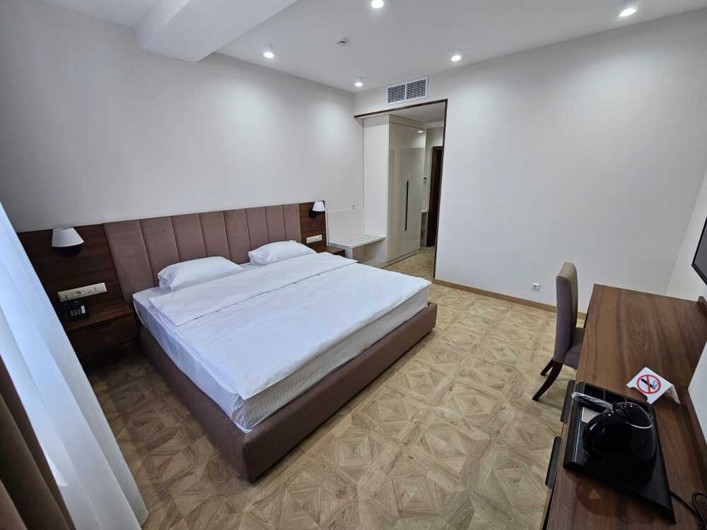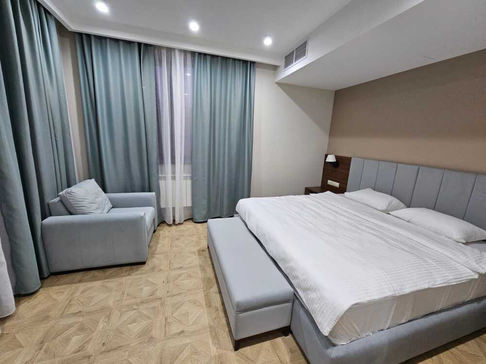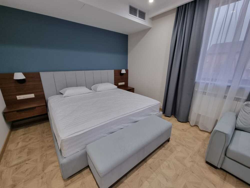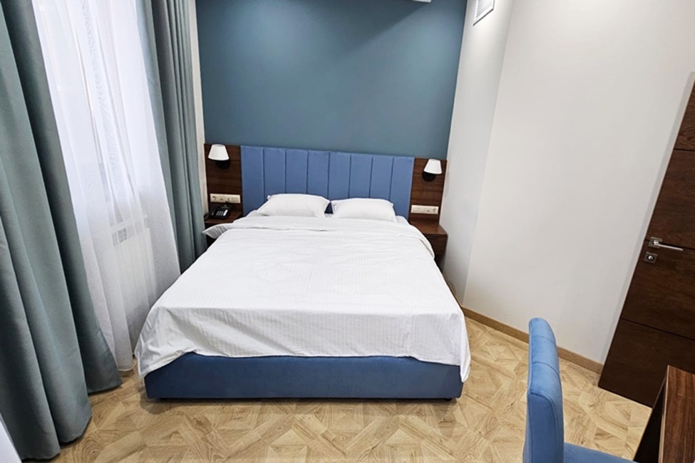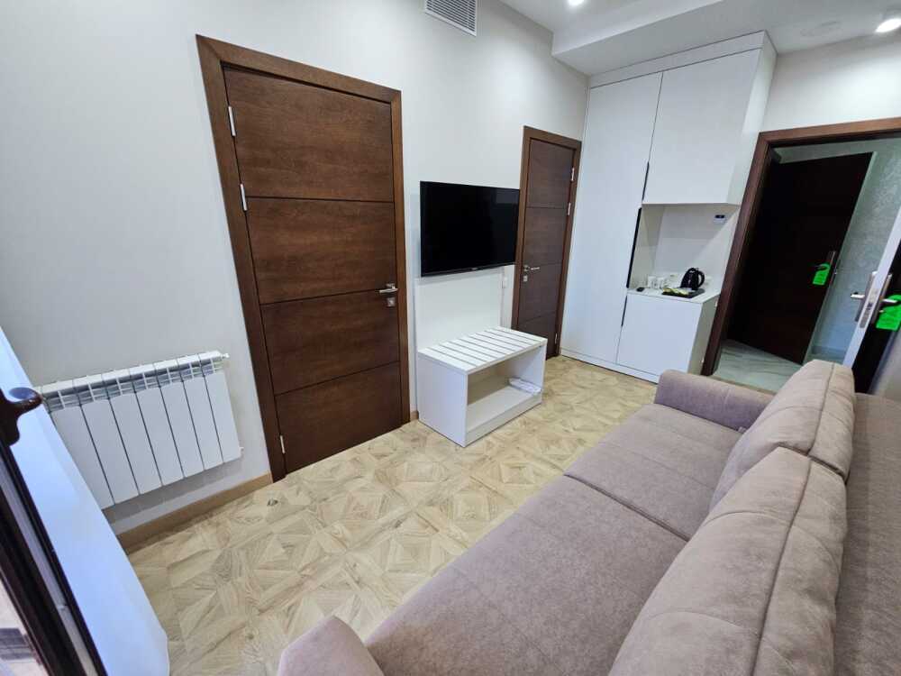 Однокомнатный номер площадью от 30-45 кв.м с одной двуспальной кроватью 180*200 см. Номер оснащен TV 45', кондиционером, телефоном, чайной станцией и холодильником. В ванной комнате с подогреваемым полом и современной душевой кабиной есть фен и необходимые гигиенические принадлежности.