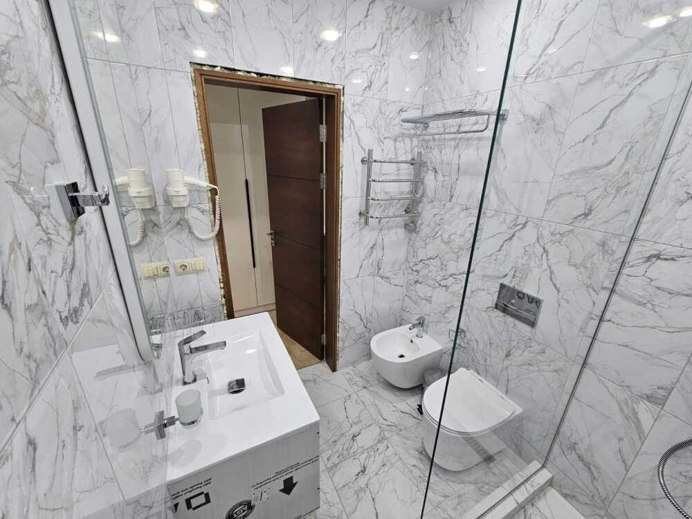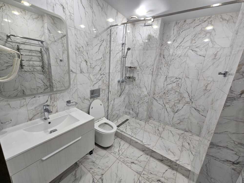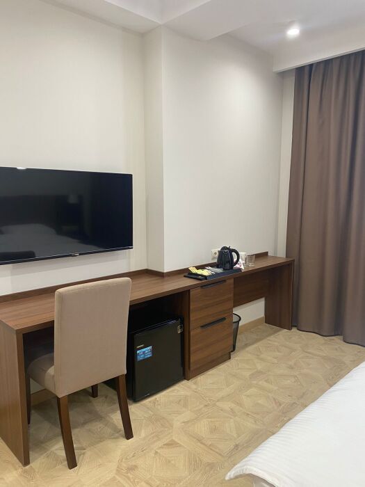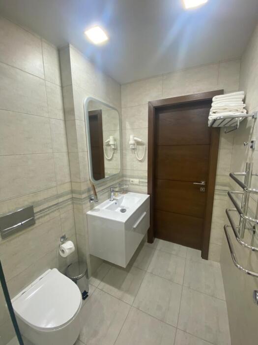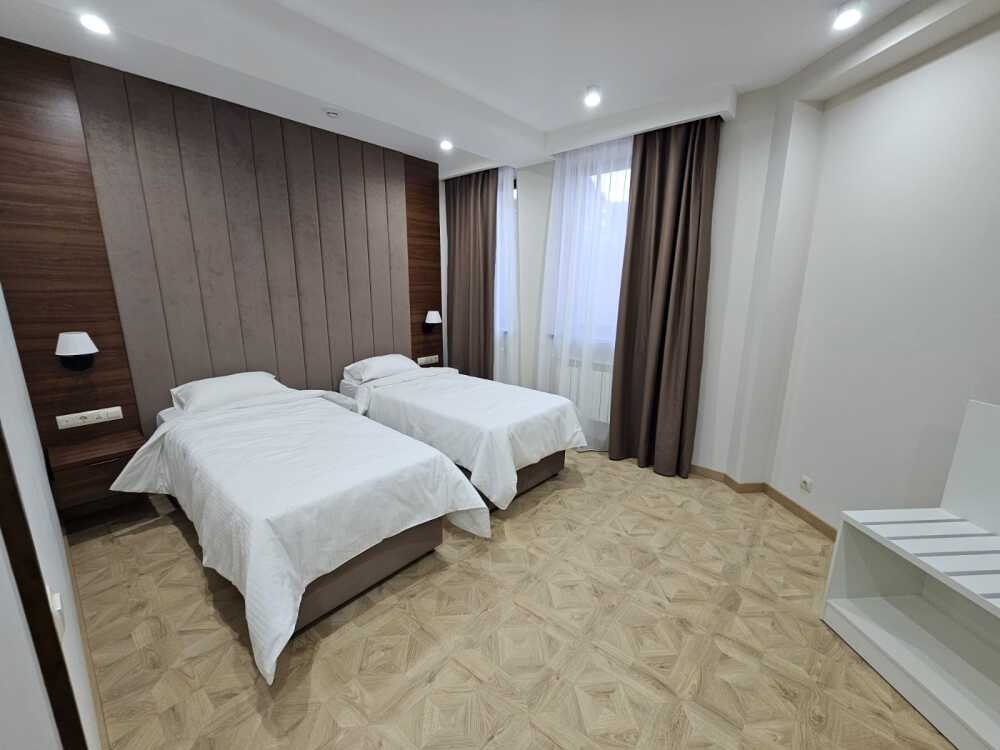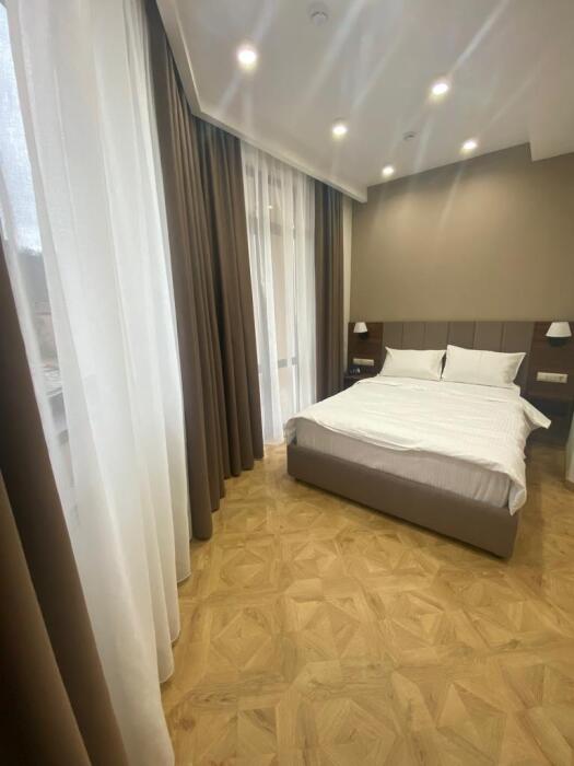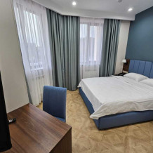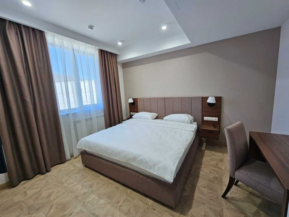 Однокомнатный номер площадью от 30-45 кв.м с одной двуспальной кроватью 180*200 см. Номер оснащен TV 45', кондиционером, телефоном, чайной станцией и холодильником. В ванной комнате с подогреваемым полом и современной душевой кабиной есть фен и необходимые гигиенические принадлежности.