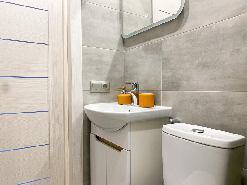 В студии полностью оборудованная мини-кухня с микроволновой печью, гостиный уголок, телевизор с плоским экраном, стиральная машина и собственная ванная комната с душем и тапочками. Также имеются холодильник, плита, чайник.