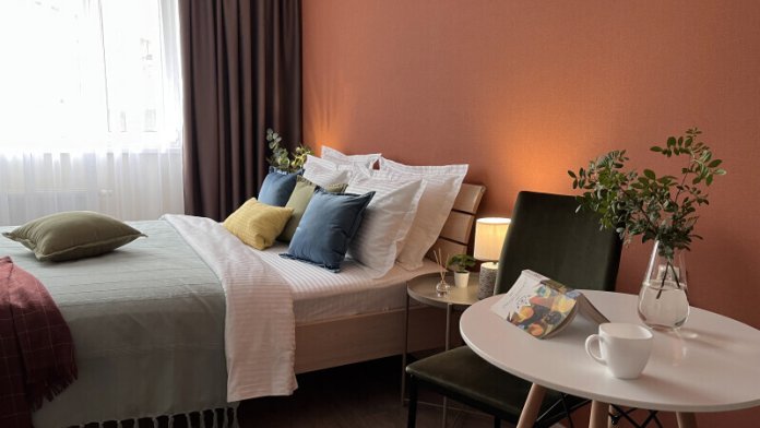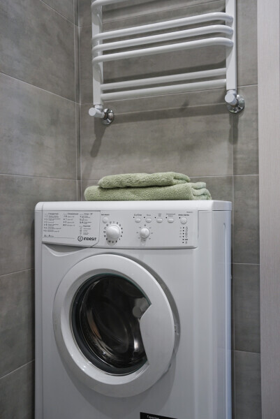 В студии полностью оборудованная мини-кухня с микроволновой печью, гостиный уголок, телевизор с плоским экраном, стиральная машина и собственная ванная комната с душем и тапочками. Также имеются холодильник, плита, чайник.
