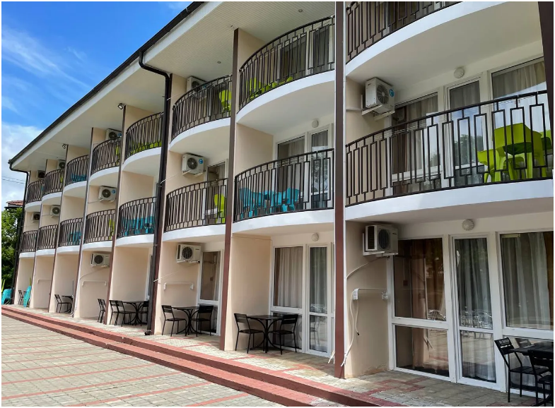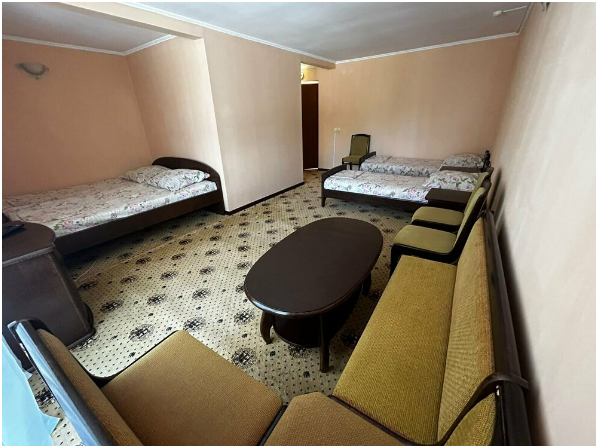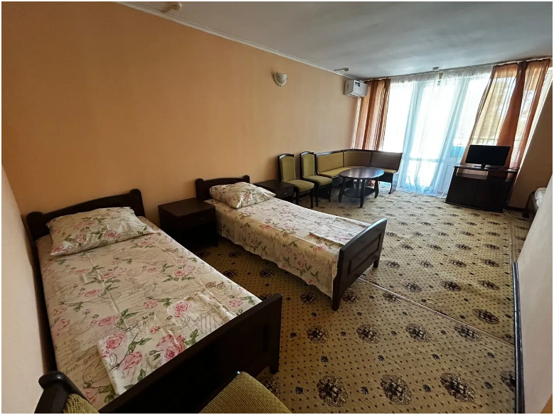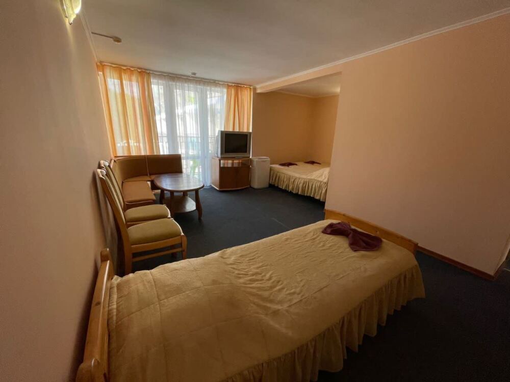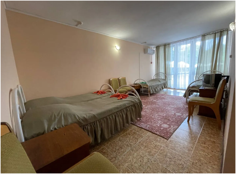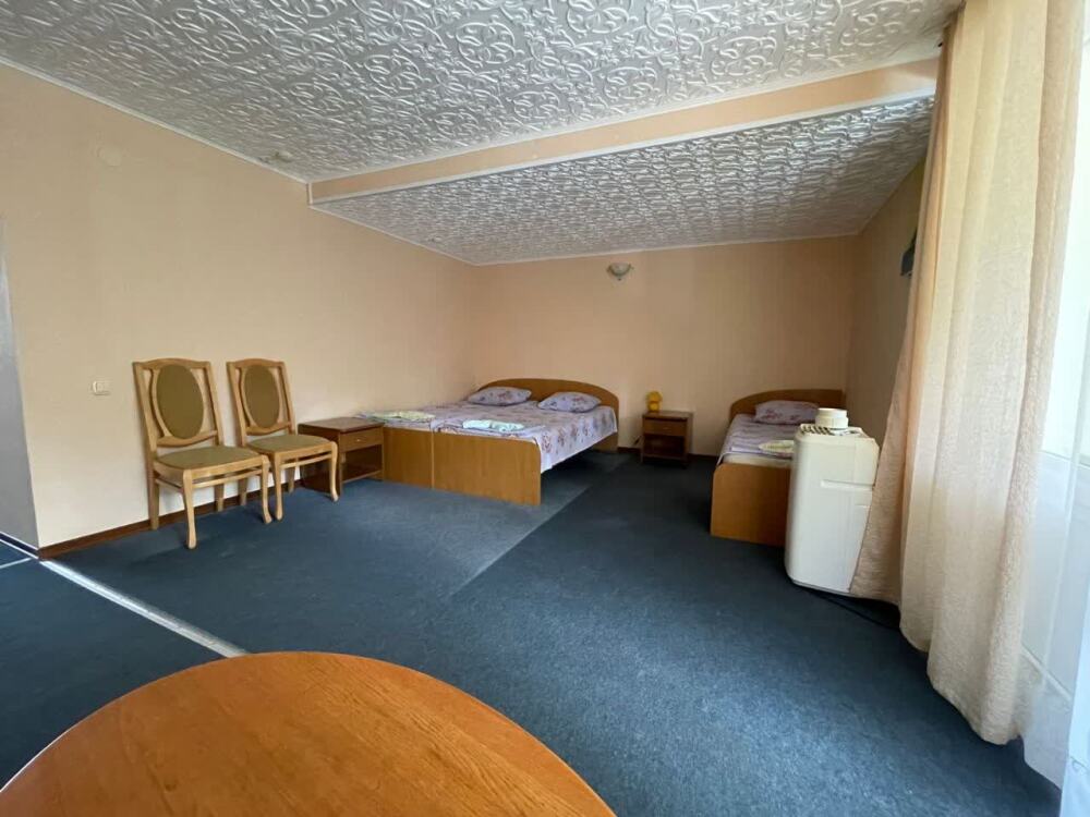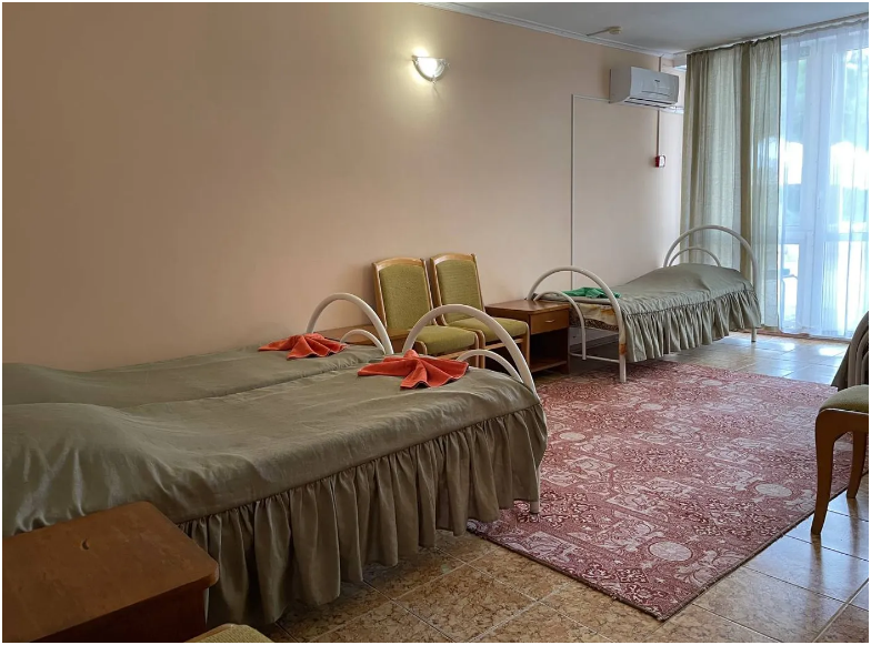 Стандартный четырехместный номер с одной двуспальной и двумя односпальными кроватью, или четырьмя односпальными кроватями и балконом. Во всех номерах, сплит, холодильник, телевизор, санузел.