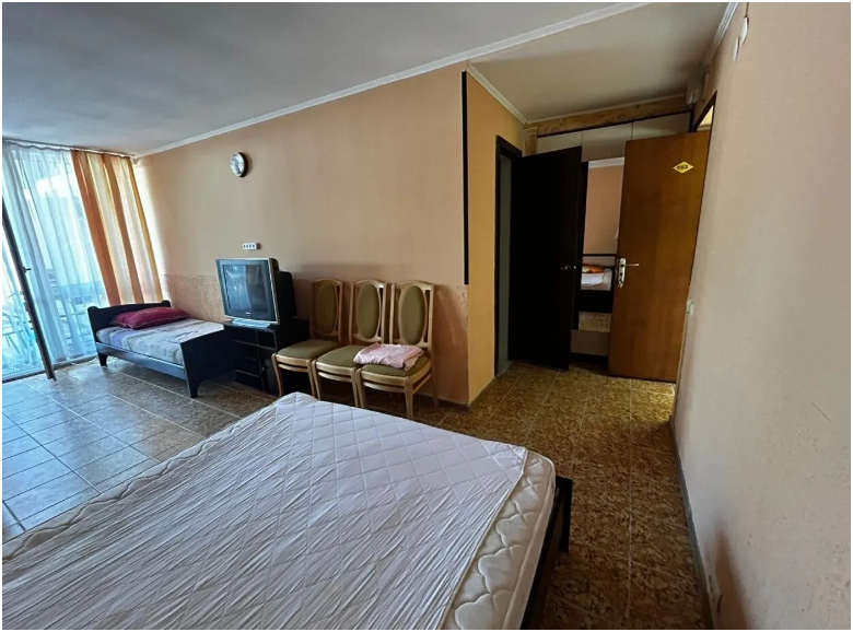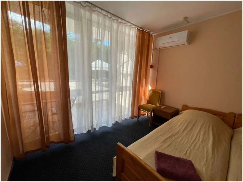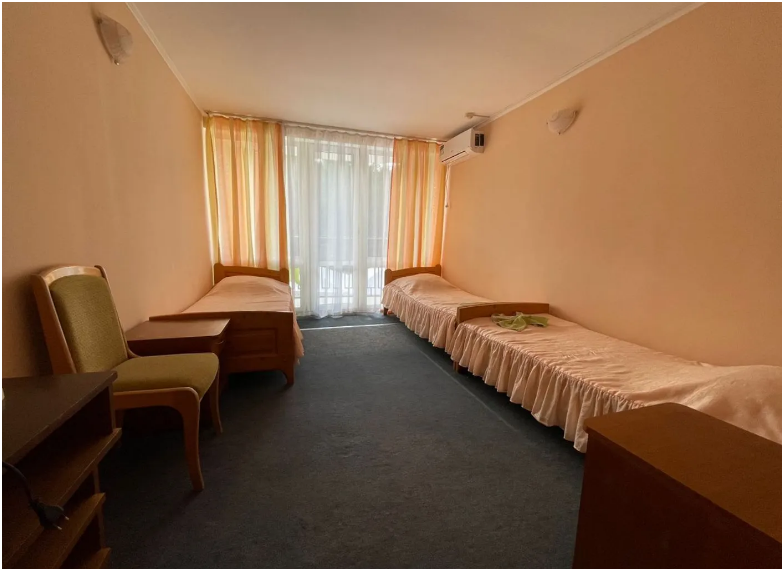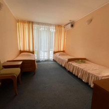 Стандартный трехместный номер с одной двуспальной и одной односпальной кроватью, или тремя односпальными кроватями и балконом. Во всех номерах, сплит, холодильник, телевизор, санузел.