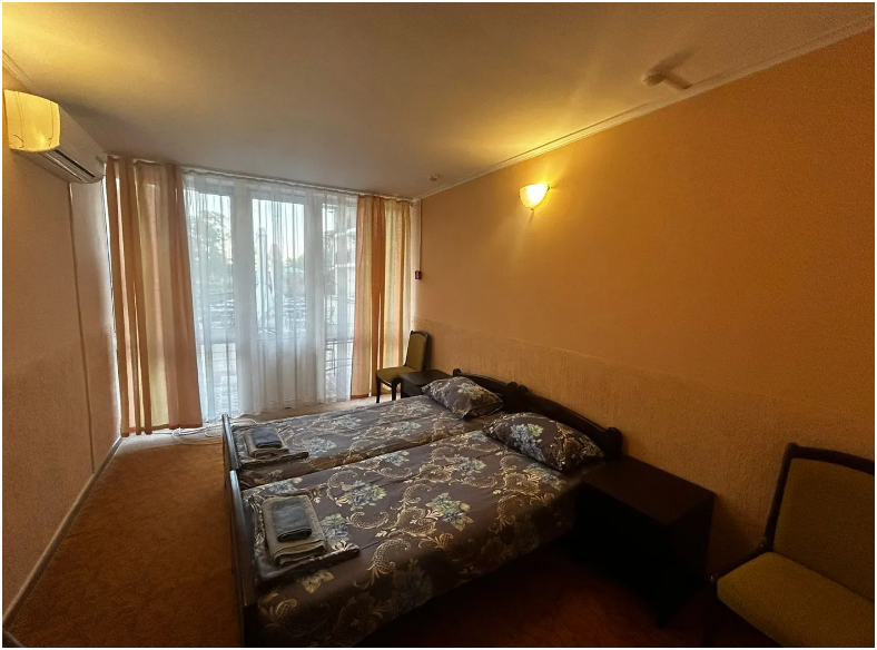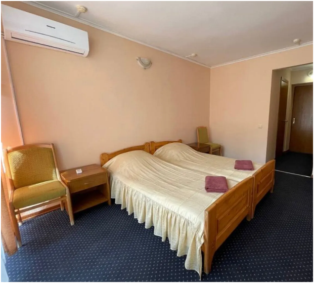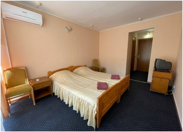 Стандартный двухместный номер с одной двуспальной или двумя односпальными кроватями и балконом. Во всех номерах, сплит, холодильник, телевизор, санузел.