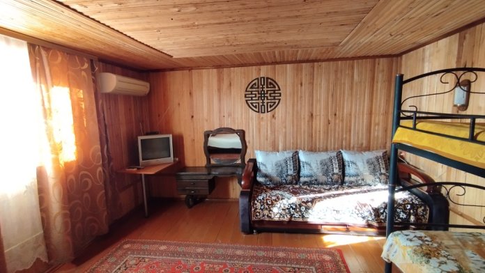 Семь спальных мест (2+1+1+1+1+1). Возможно дополнительное спальное место. Просторная кухня со всей необходимой посудой и техникой. Душевая кабина, санузел. Каждая комната оборудована спальными местами с подушками и одеялами, постельным бельём. Имеется сплит система. Проведен wi-fi. До моря 20метров.