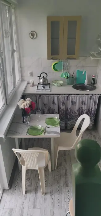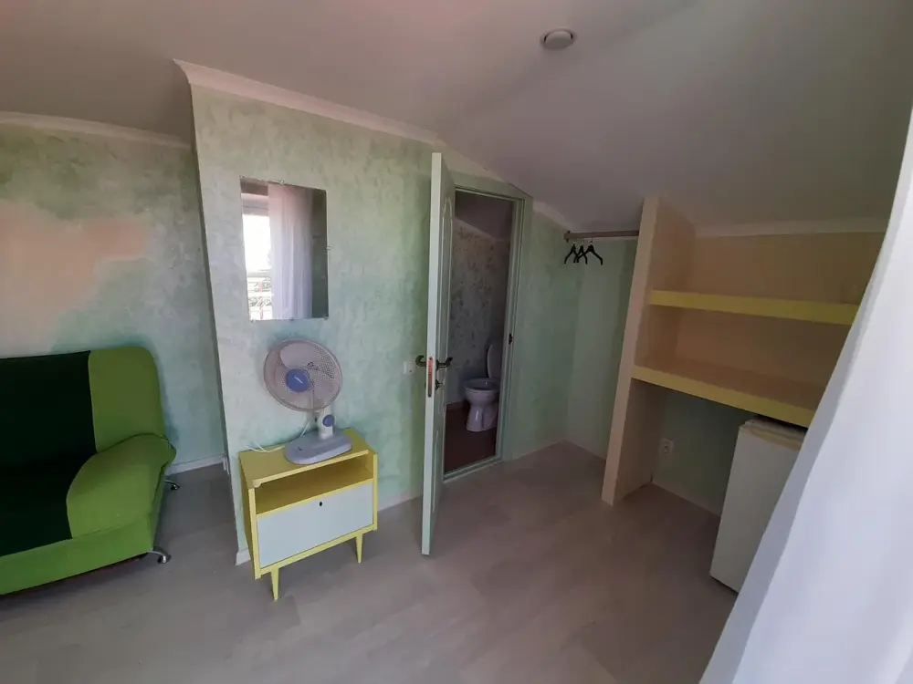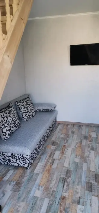 Двухэтажные апартаменты с кухней. 1 этаж диван- кровать, кухня, санузел. В апартаментах имеется все для комфортного отдыха и проживания: холодильник, газовая плита, телевизор и кондиционер. На 2 этаже двуспальная кровать, раскладное кресло.