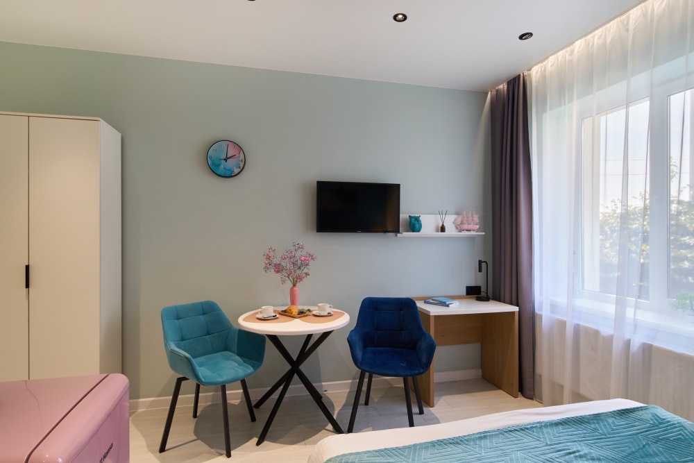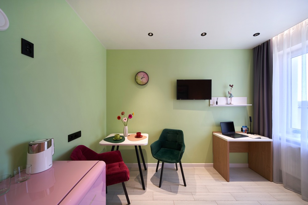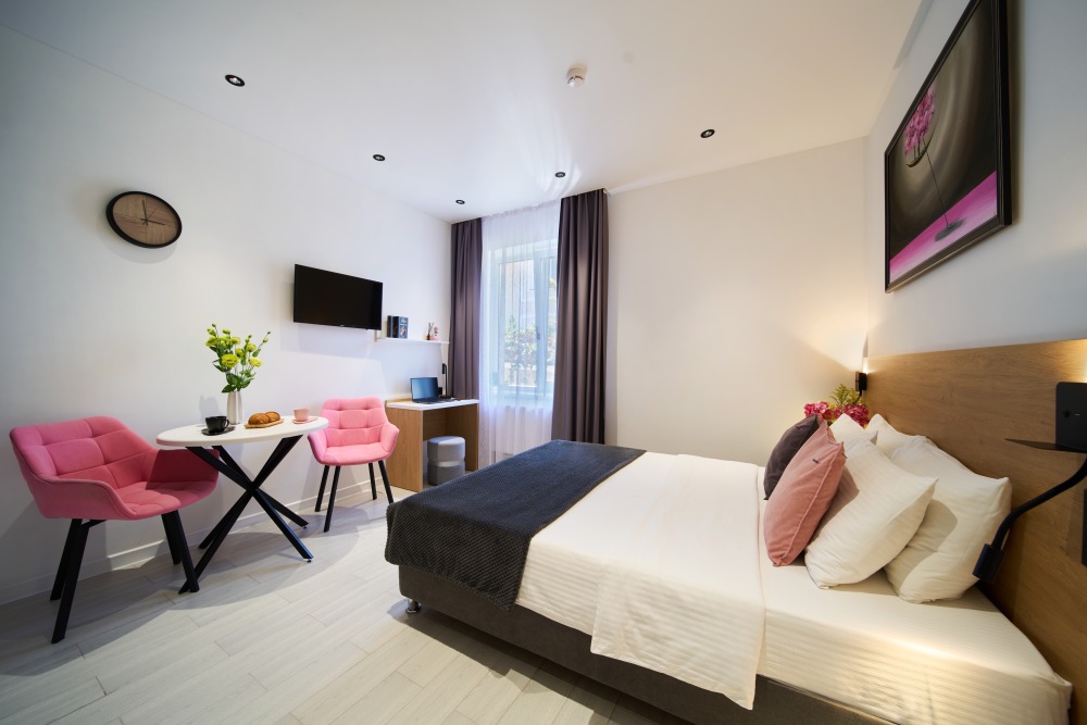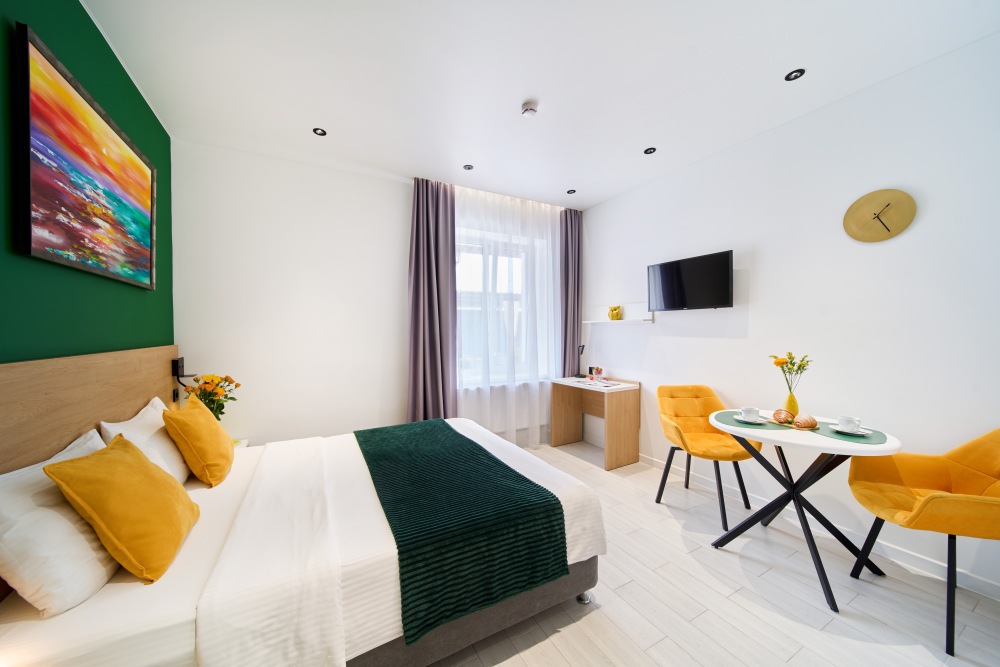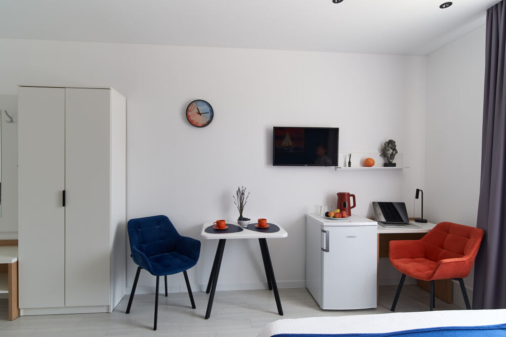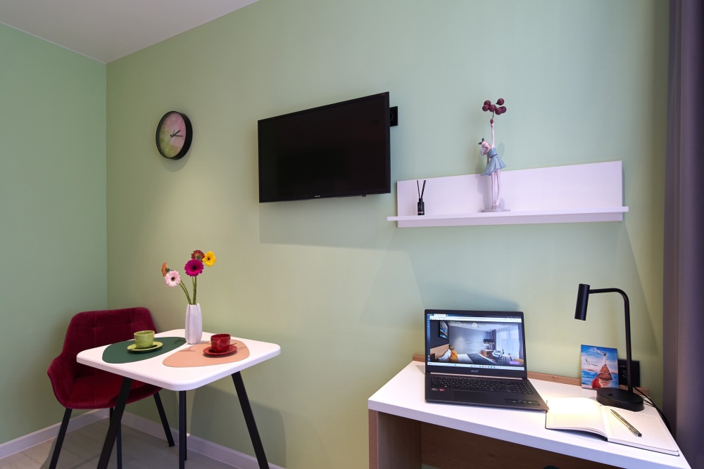 - Удобные рабочие зоны, Smart-TV и бесплатный Wi-Fi.
