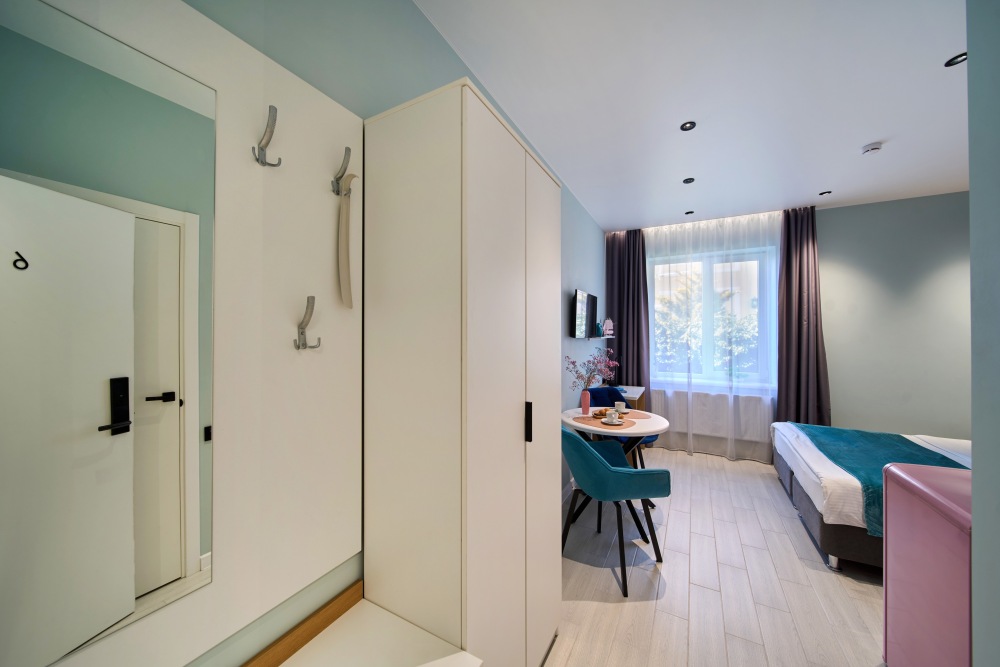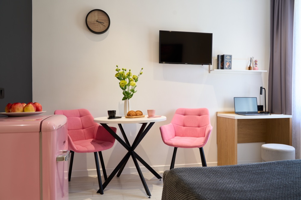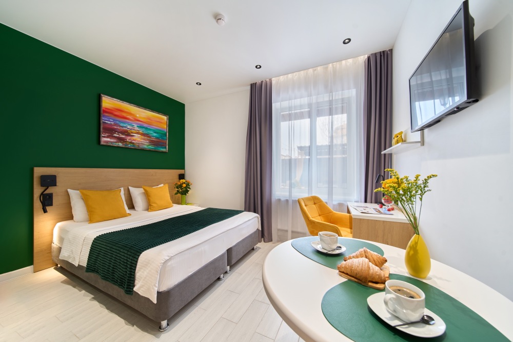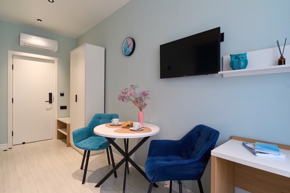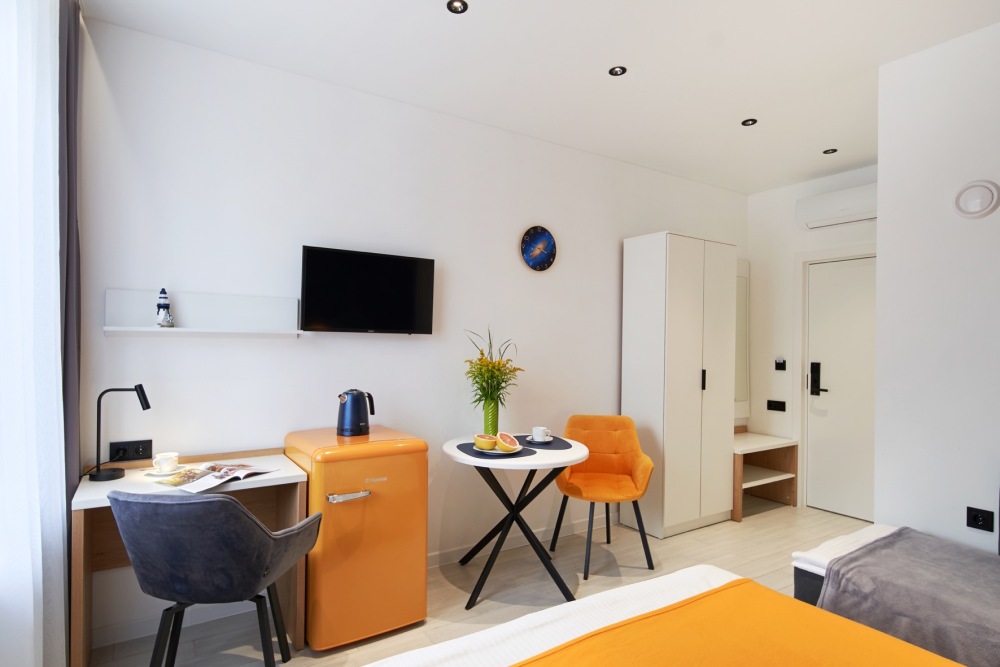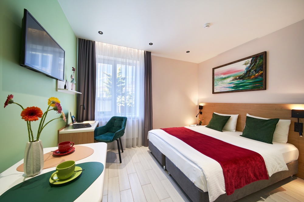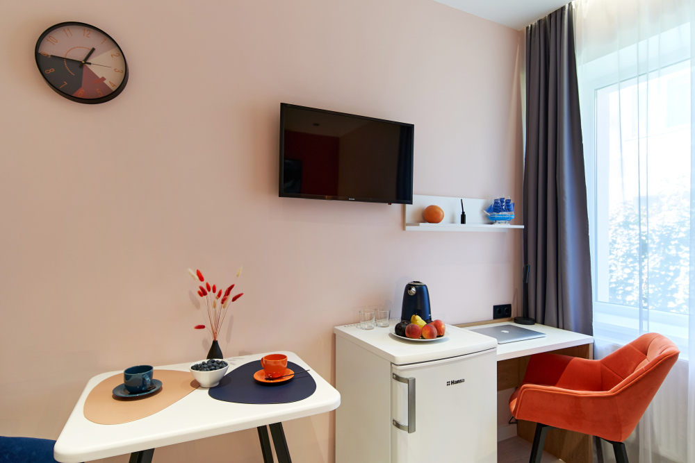 - Удобные рабочие зоны, Smart-TV и бесплатный Wi-Fi.
