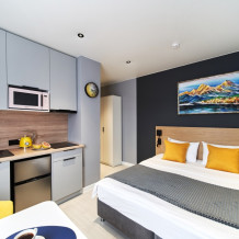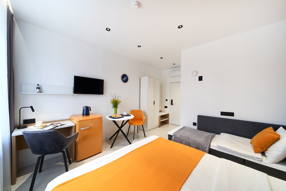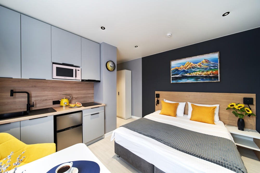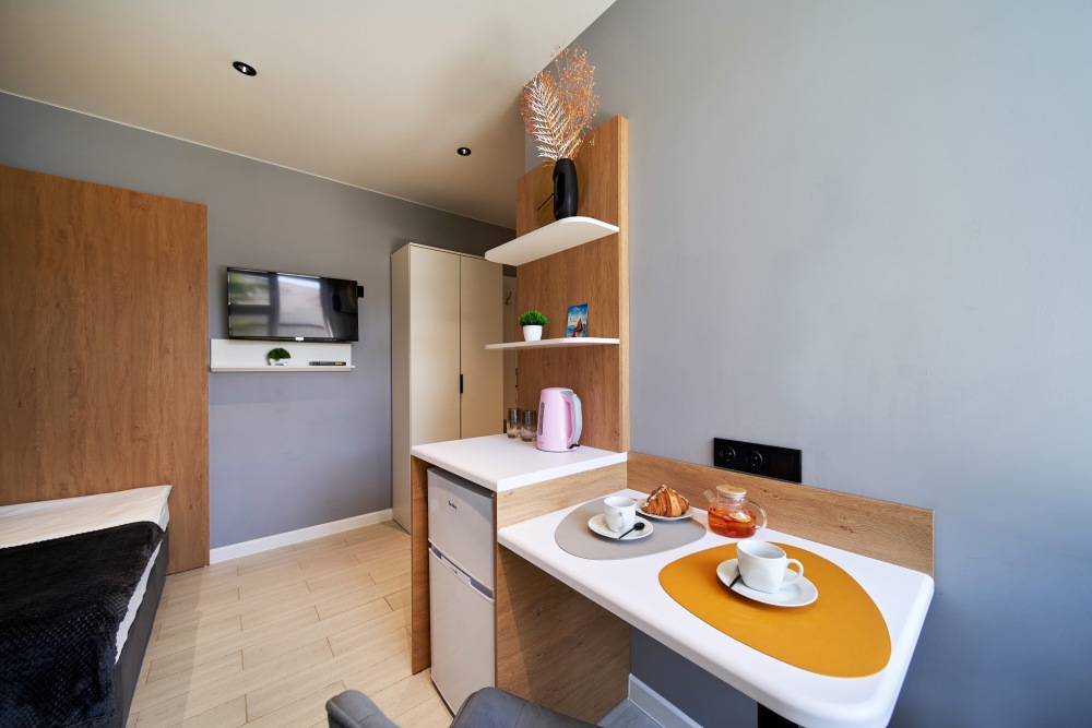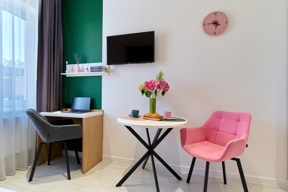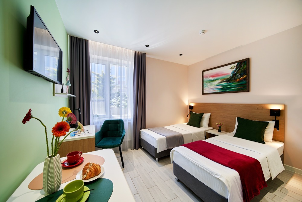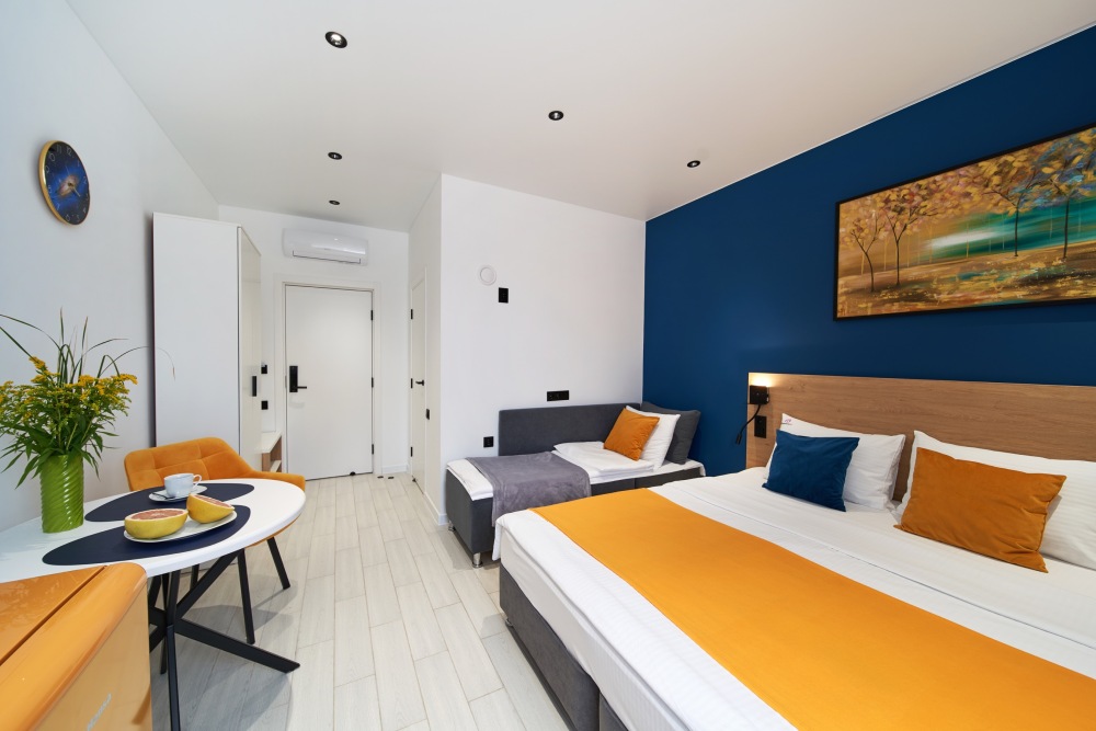 - Удобные рабочие зоны, Smart-TV и бесплатный Wi-Fi.