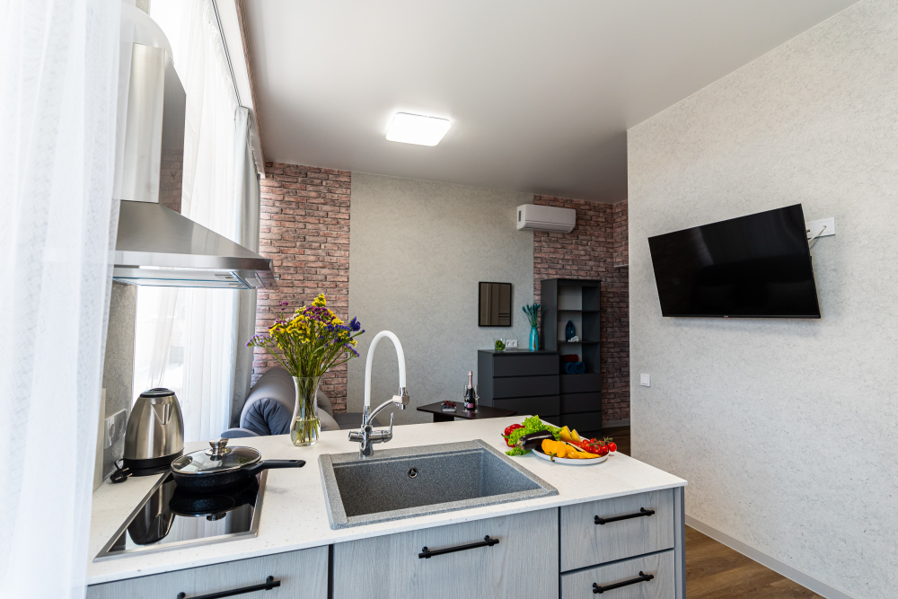 В квартире есть кухня со всей необходимой техникой. Мы очень рады семьям с детьми. Размещение до 4 человек.