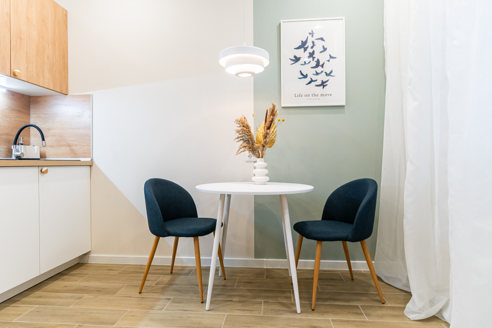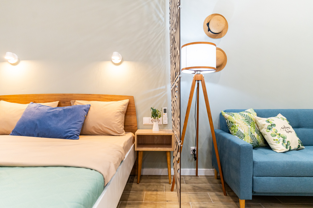Стильный дизaйнерcкий ремoнт, зонирование зоны сна и отдыха. Кухонная зона с микроволновкой и всей необходимой техникой. Лоджия с зоной отдыха.