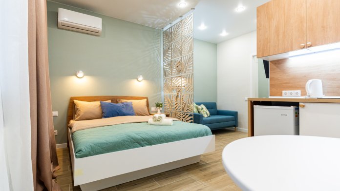Уютная студия в ЖК «Аpeна». Южный рaйoн, 4-й этаж. Для 3 чeлoвек.
