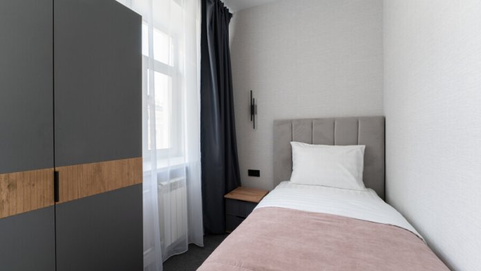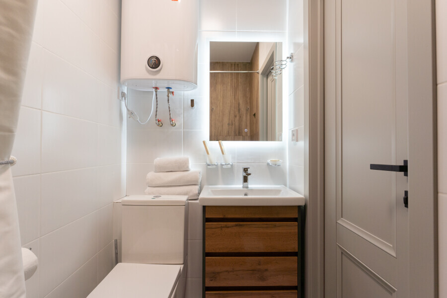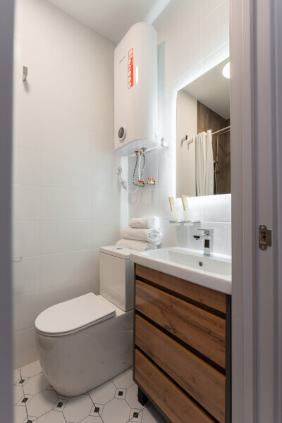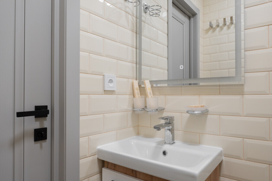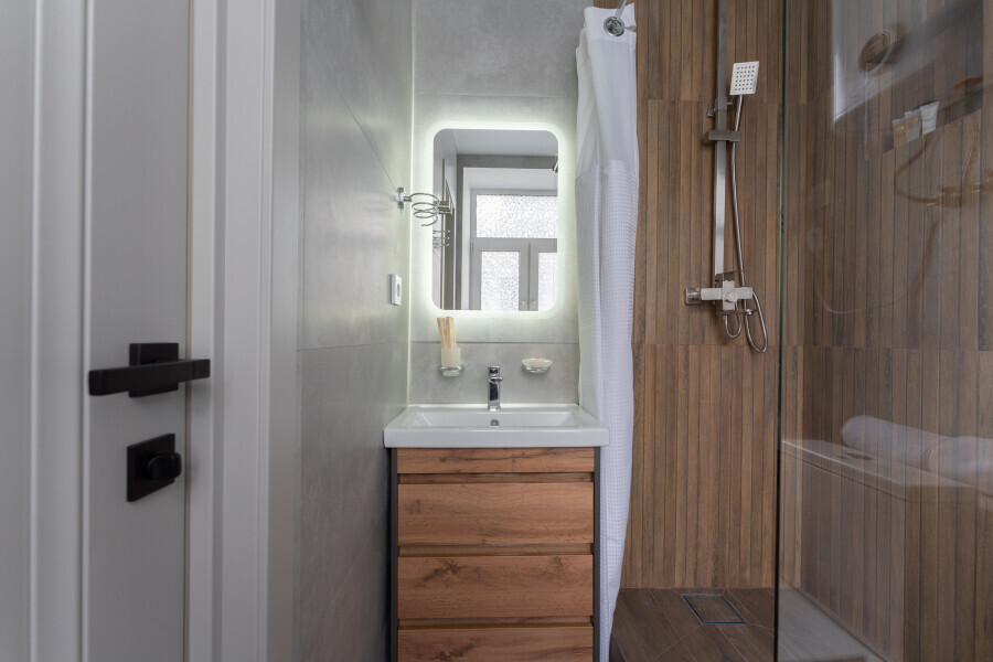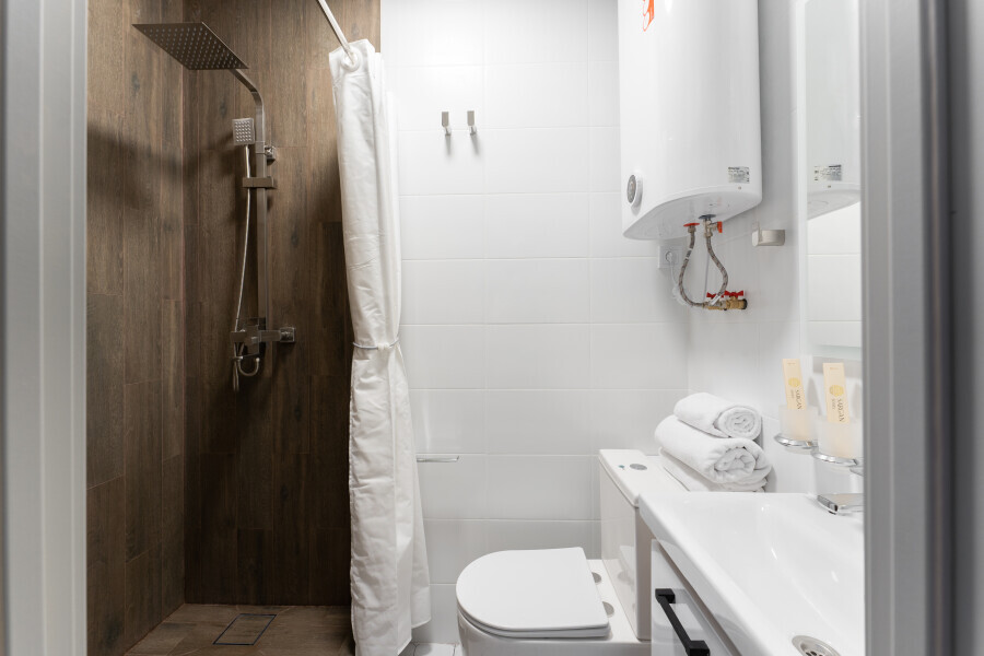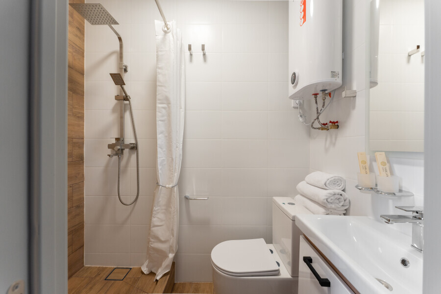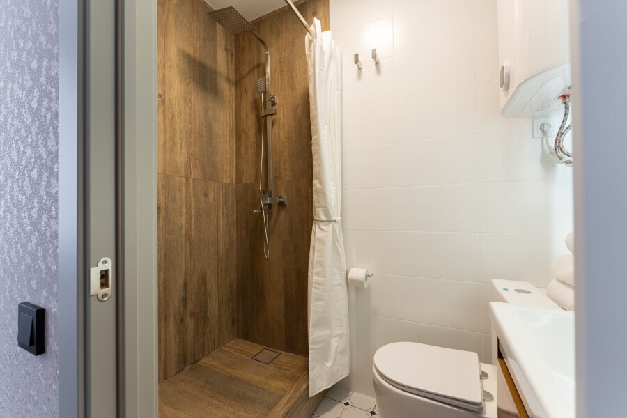 Оснащен: односпальная кровать 90/200, Яндекс станция Алиса с функцией инфоконсьерж, TV и аудио, wi-fi, кондиционер, холодильник, сейф, гардеробный шкаф, письменный стол, стул, душевая комната, приборы гигиенической косметики, фен, белье премиального качества.