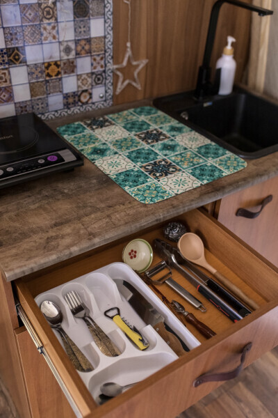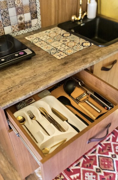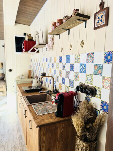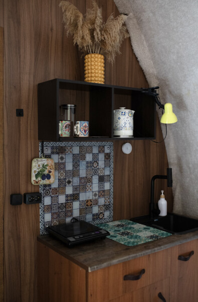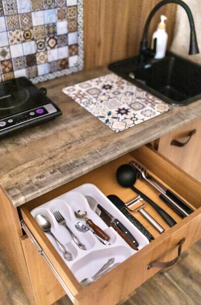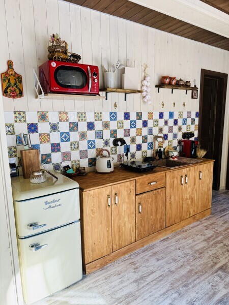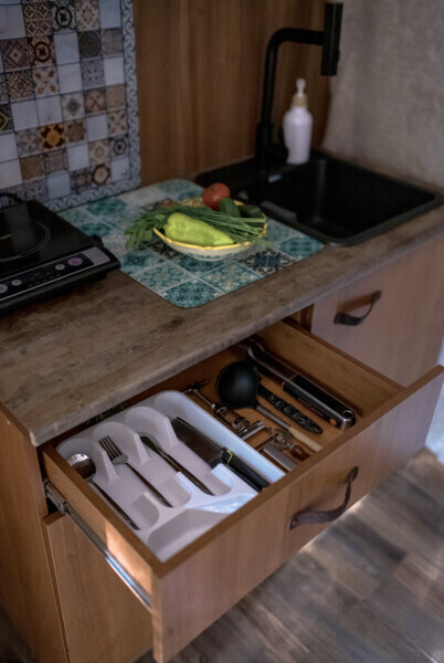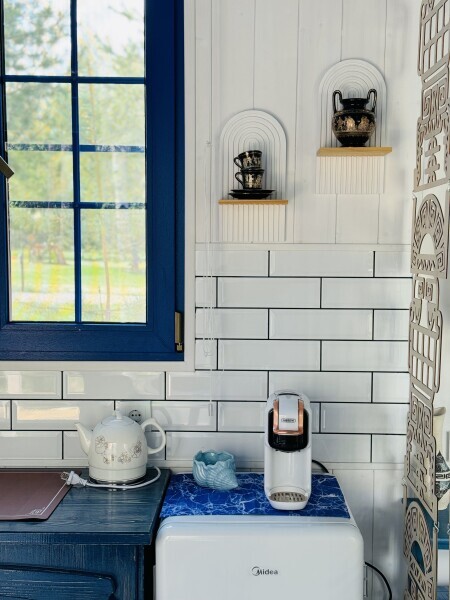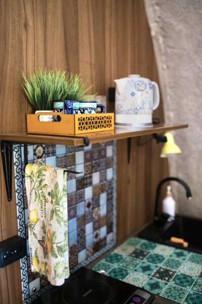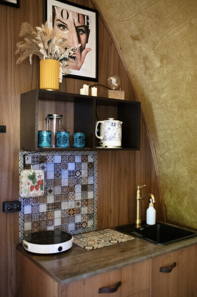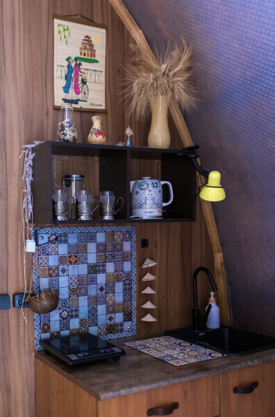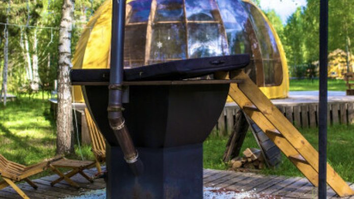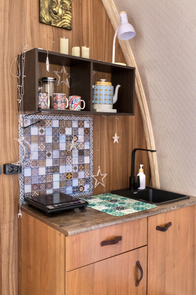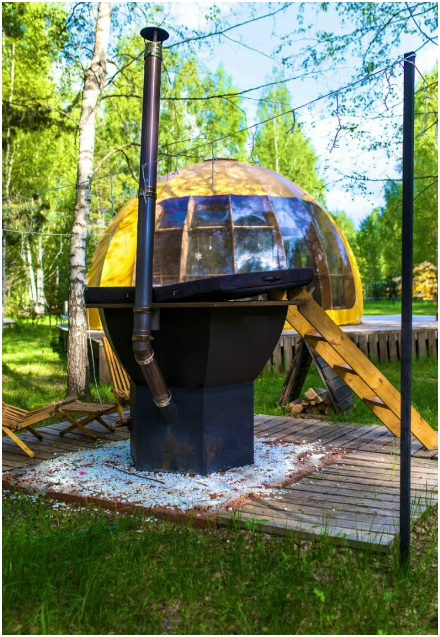 В каждой сфере располагается мини-кухня, которая включает в себя: кофемашину, чайник, электрическую плиту и холодильник. Все домики имеют разный дизайн и находятся на комфортном расстоянии (50-70 метров) друг от друга, чтобы все гости чувствовали себя максимально уединенно. У каждой сферы есть личная терраса (100 кв.м.), с зоной отдыха, собственной мангальной зоной в нее входят мангал и шампура (уголь, розжиг, решетку привозите с собой) и банным чаном. Варианты размещения в сферах: 2 взрослых, 2взрослых и 1 ребенок, 2 взрослых и 2 ребенка, 3 взрослых, 3 взрослых и 1 ребенок. За 3-го взрослого доплата.