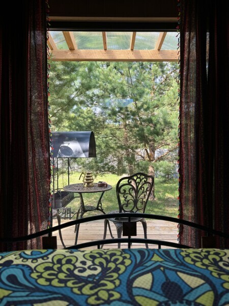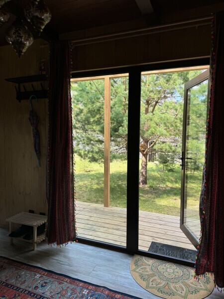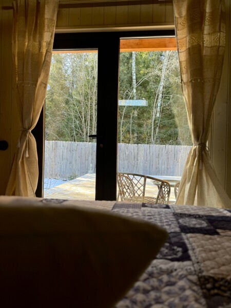Дом отвернут от территории глэмпинга, вид на заповедный лес, собственный выход в лес.