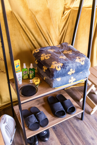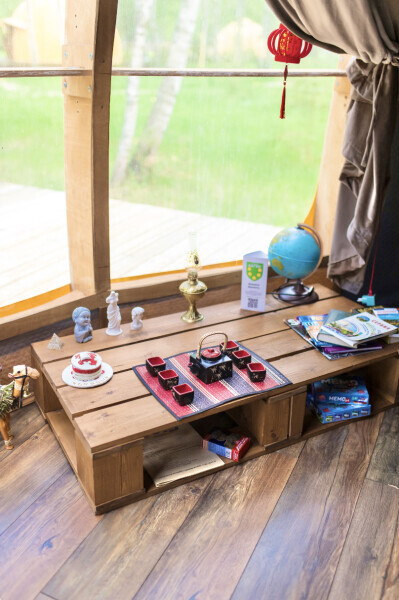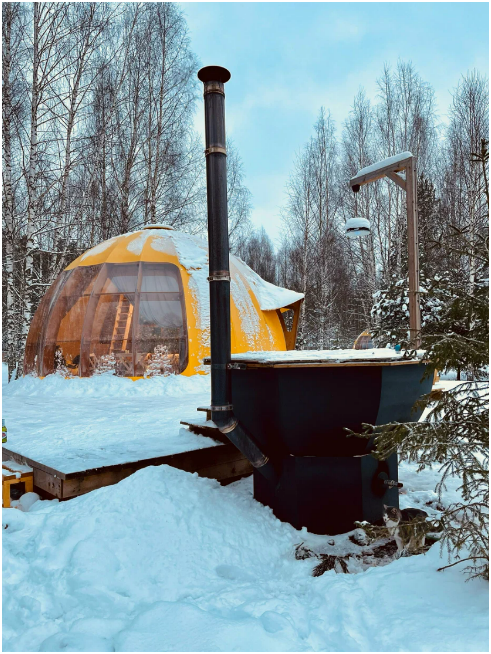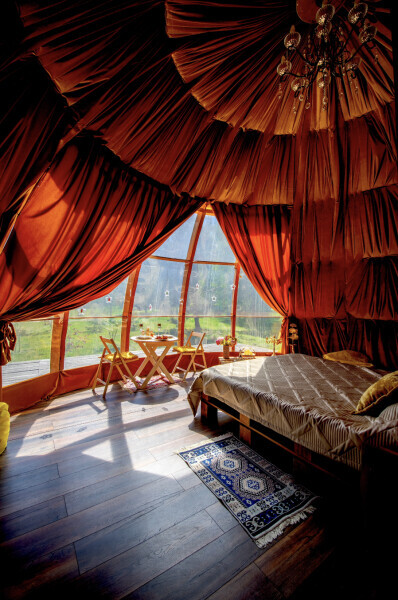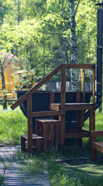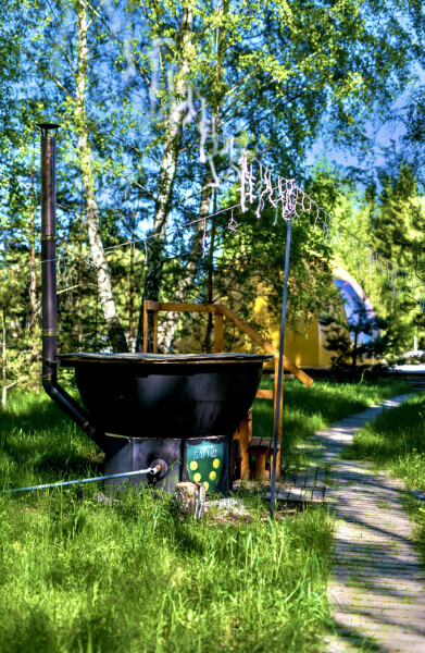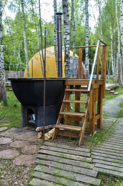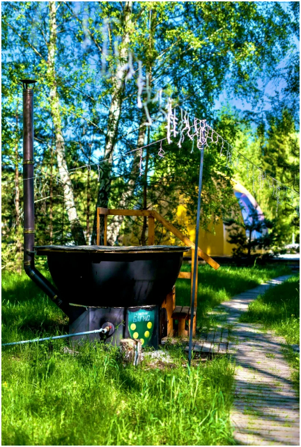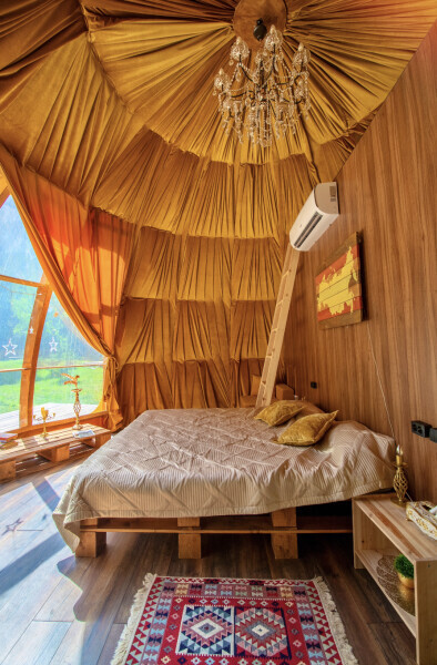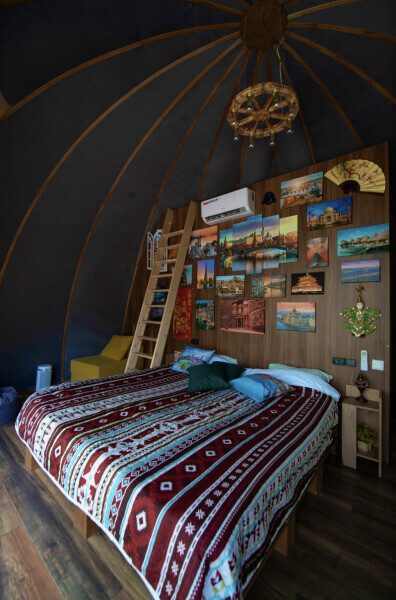Есть второй ярус, на котором может с комфортом разместить ребенок. А еще горячие ванны под открытым небом (не включены в стоимость проживания).