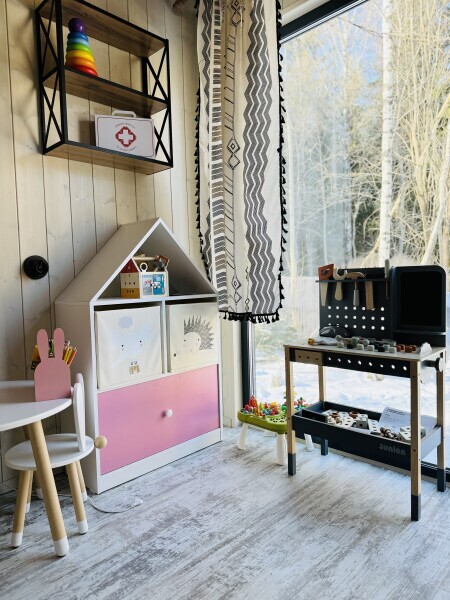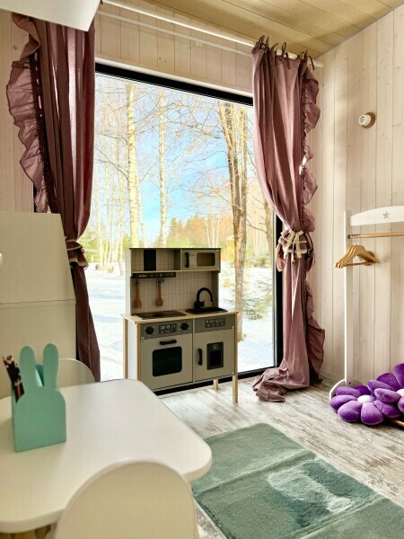 На территории несколько зон для тех, кто любит активный отдых: спортивная площадка с брусьями и скамьей для пресса, теннисный стол, волейбольная площадка. Также Вы можете покататься на велосипедах (бесплатно), или взять в аренду сапы, ведь в 10 минутах от нас расположены два огромных пруда с видом на древний монастырь. А еще у нас есть бадминтон, фрисби, футбольный мяч и дартс. А в зимнее время года предусмотрена горка для тюбинга, санки и каток на замерзшем озере (если позволяет погода, конечно).