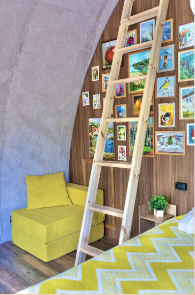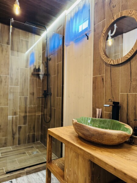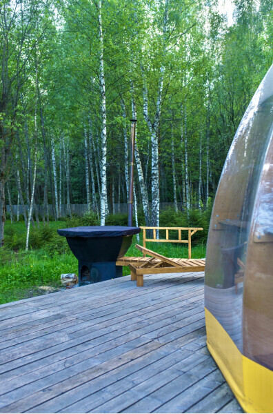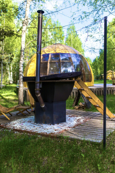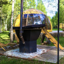 Футуристичная сфера, которая перенесет Вас в путешествие к самым красивым местам нашей планеты. В сфере есть всё для комфортного отдыха: кондиционер, санузел, душ, фен, кухня со всем необходимым оборудованием и посудой, кофемашина. В Вашем распоряжении огромная личная веранда с садовой мебелью, шезлонгом и мангальной зоной. А еще в этой сфере есть возможность арендовать горячий банный чан.