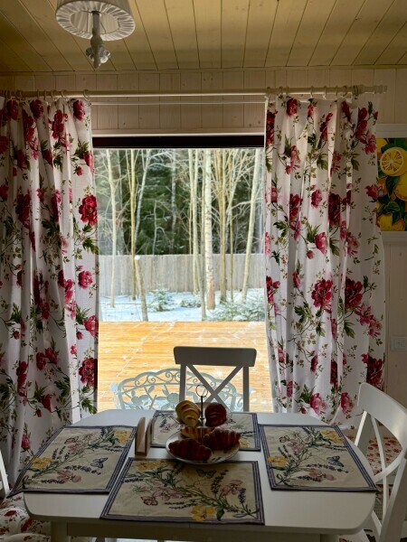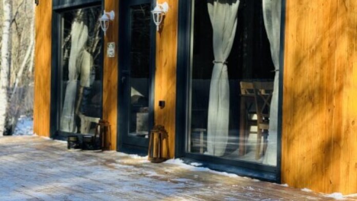 Дом отвернут от территории глэмпинга, поэтому из огромных панорамных окон открывается вид на заповедный лес.