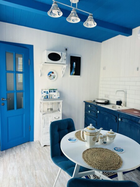 В доме: большая кухня с холодильником, плитой, чайником, кофемашиной и микроволновой печью. Гостиная, ванная комната с просторной душевой, а также две спальни: одна с большой двуспальной кроватью, а вторая предназначена для наших маленьких гостей — с игрушками и двухъярусной кроватью, размер каждого спального места 90*200.