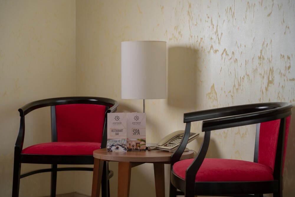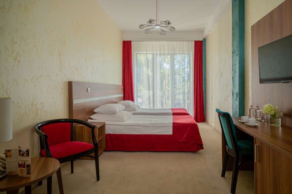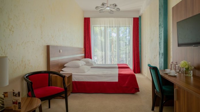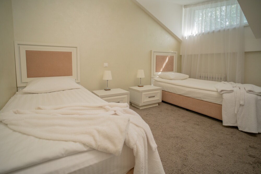 Однокомнатные номера категории «Deluxe Twin» подходят для комфортного размещения 2 гостей и оснащены всем необходимым для проживания: удобными креслами и журнальным столиком, полноценным рабочим местом, шкафом, двумя раздельными односпальными кроватями, телевизором, мини-баром и индивидуальным санузлом (с душевой кабиной). Возможна организация 1 дополнительного места за отдельную плату. Номера этой категории дополнительно располагают балконом. Подходят для комфортного проживания и оснащены всем необходимым для проживания.