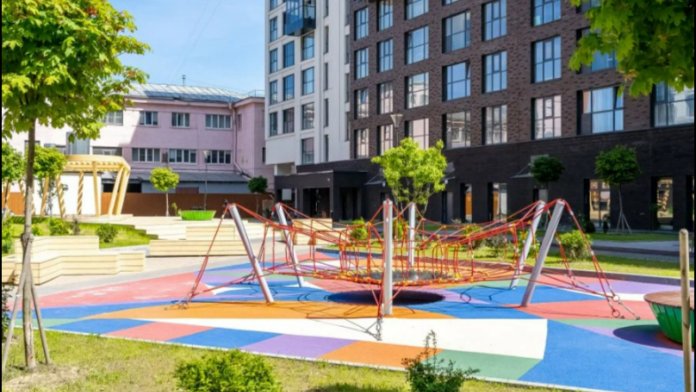 В большом зеленом дворе детские площадки с батутом и качелями, садом камней с ландшафтным дизайном. Въезд во двор закрыт автоматическими воротами, а вход во двор только с помощью электронного ключа. Парковка возле дома. Видеонаблюдение, охрана, закрытая территория гарантируют безопасность и надежность, уверенность и статус.