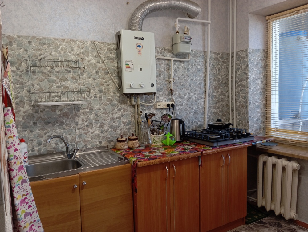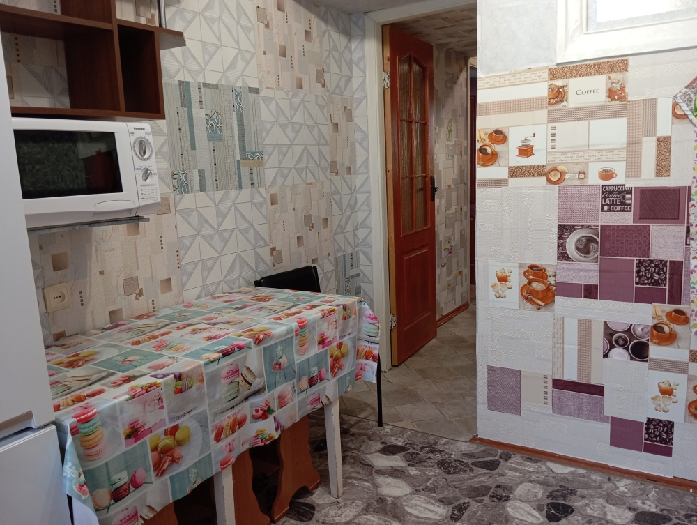 На кухне имеется все необходимое: холодильник, газовая плита, СВЧ, электрочайник, посуда.
