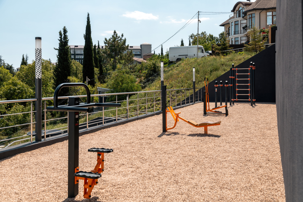 - детская площадка, теннисный корт, зона настольного тенниса;