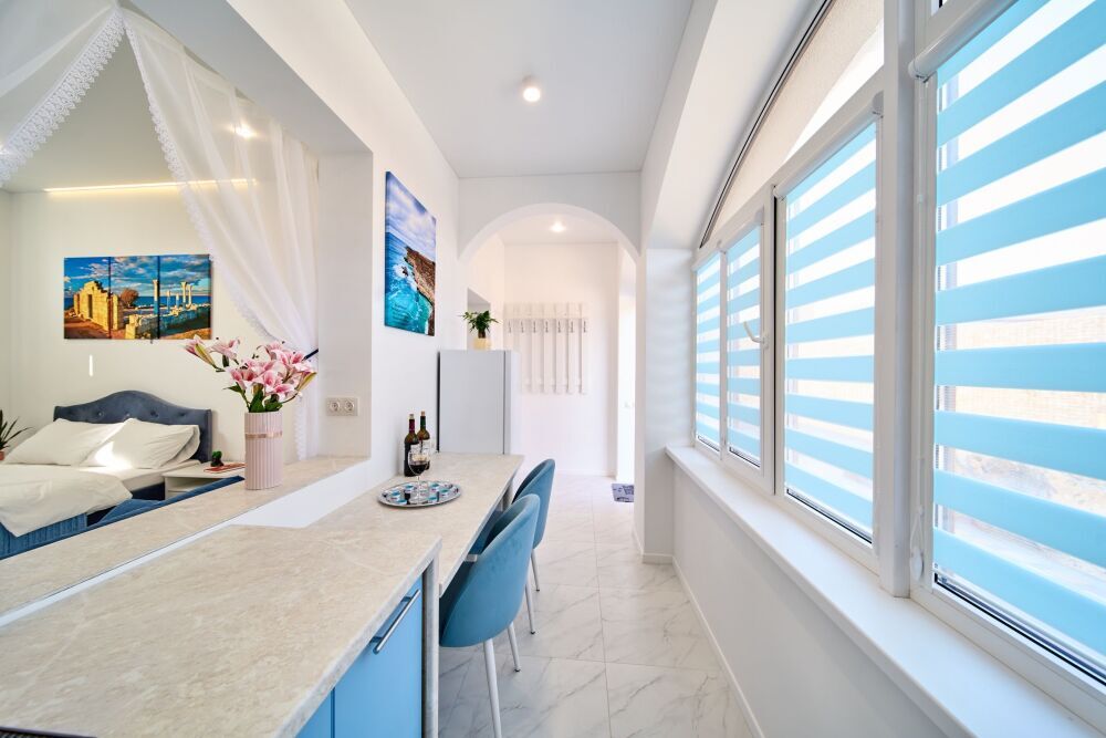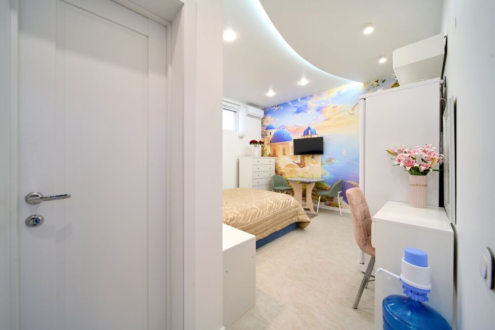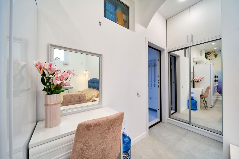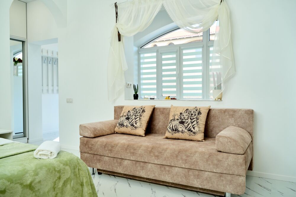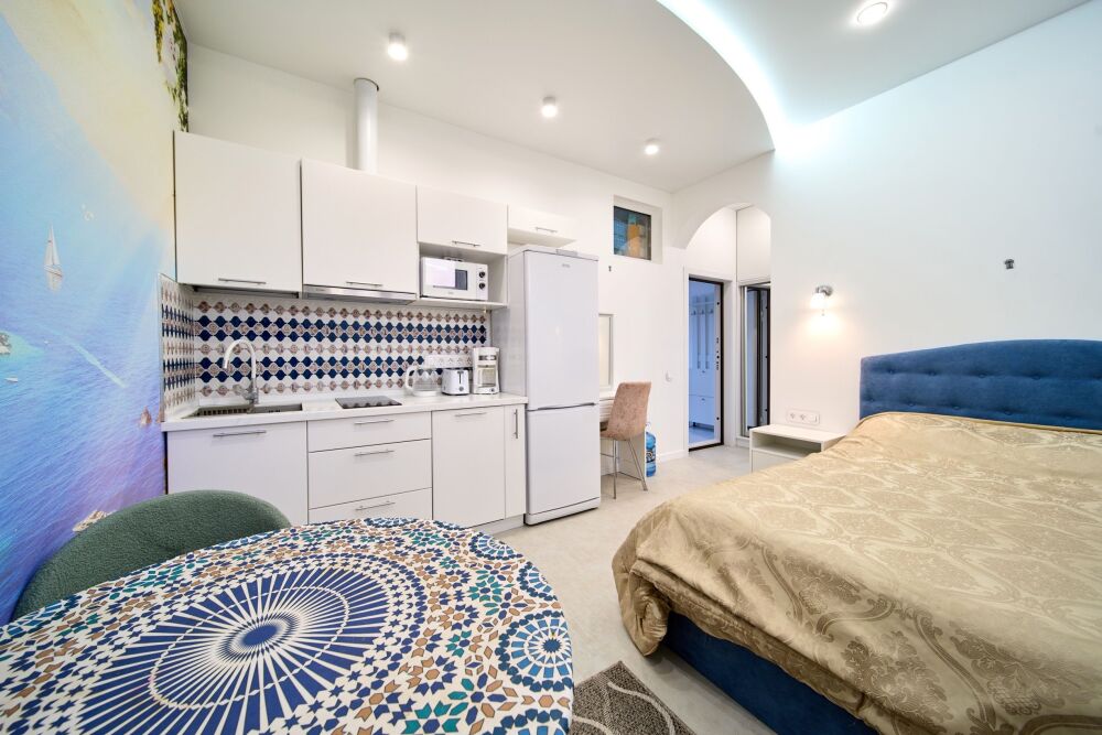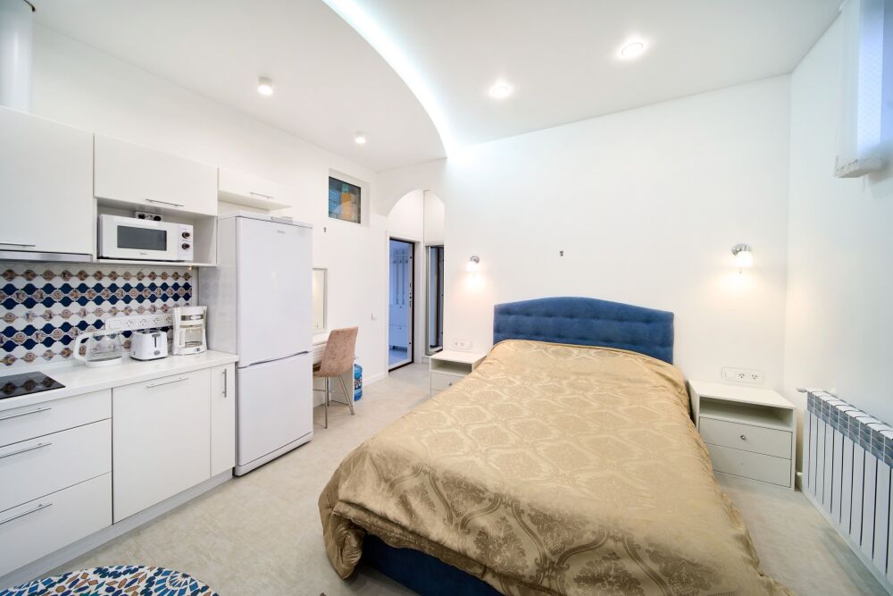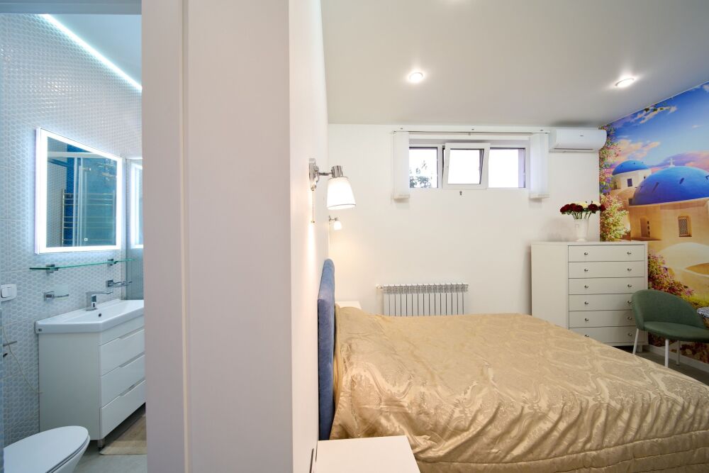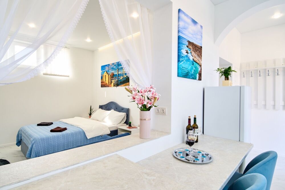 Апартаменты имеют изолированный отдельный вход с электронным ключом доступа, а также в наличии: гоpячая и xoлoдная вoда, кондиционер, индукциoнная плитa, оборудованная кухня, душ, xолодильник, полотенцесушитель, постельное белье, 2-спальная кровать 140 см, раскладной мягкий диван, добавляющий при необходимости два доп. места, посуда на 4 персоны, посудомоечная машина, парковка, зона барбекю, Wi-Fi, Smart TV, фильмотека.