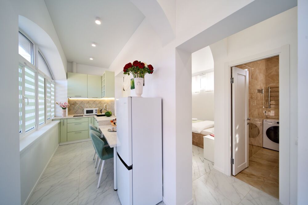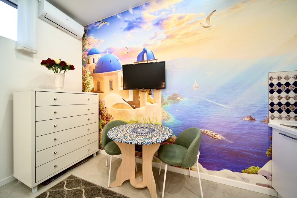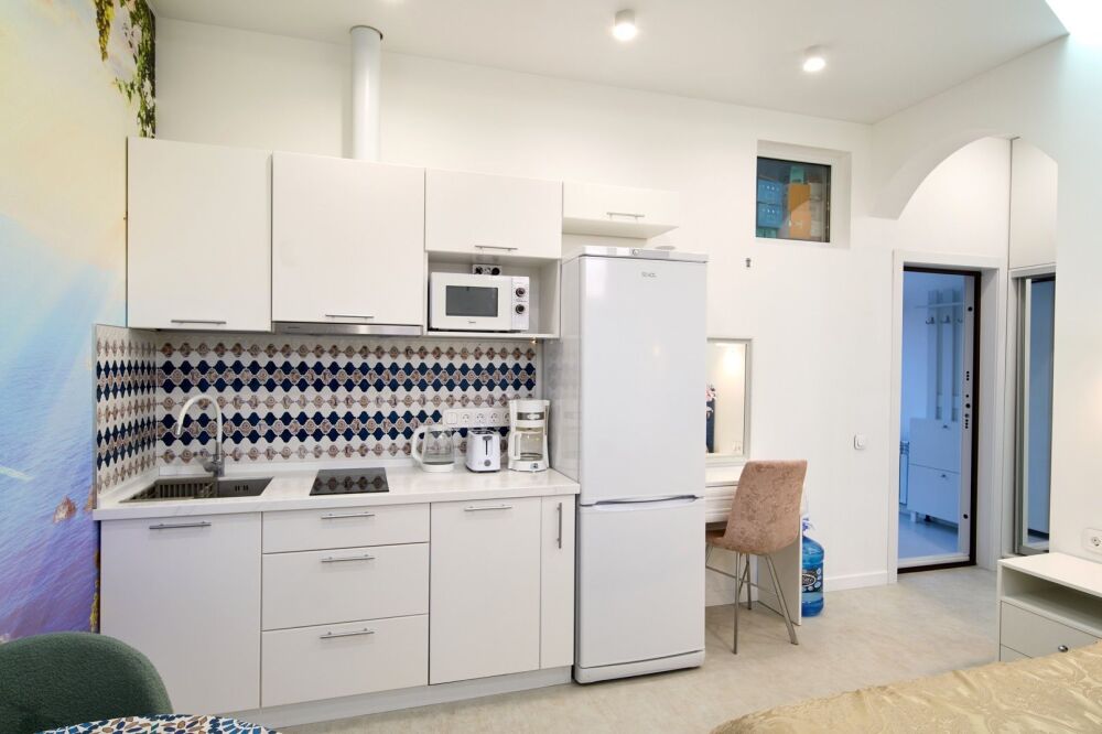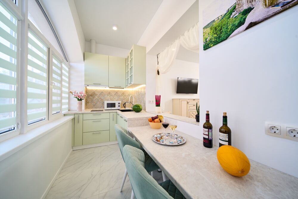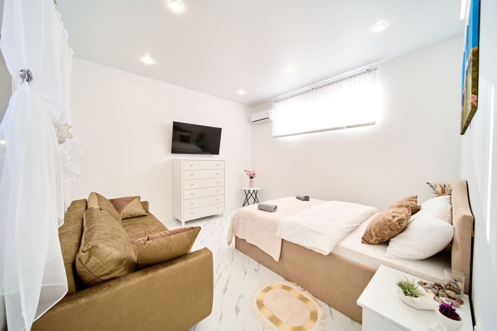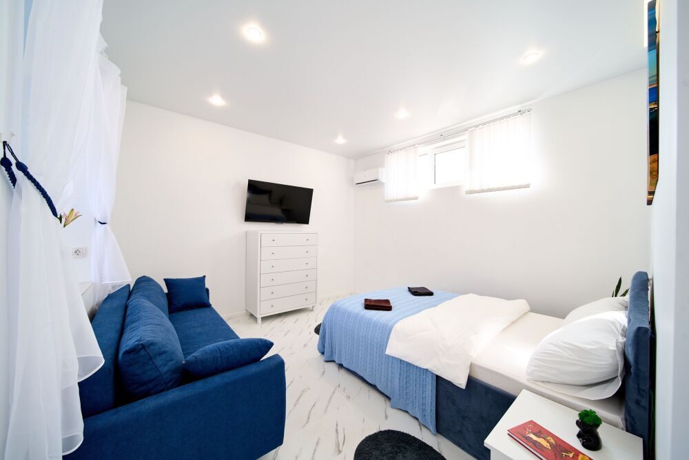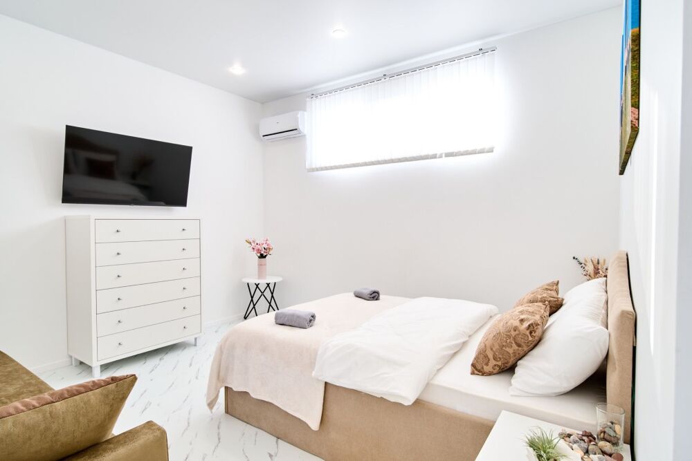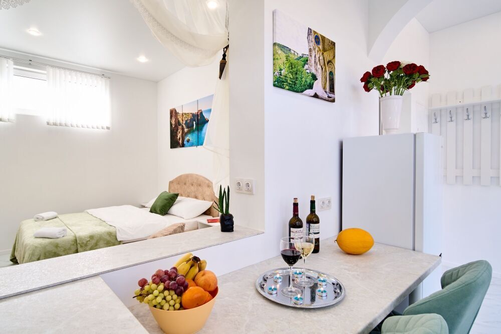 Апартаменты имеют изолированный отдельный вход с электронным ключом доступа, также в наличии: гоpячая и xoлoдная вoда, кондиционер, индукциoнная плитa, оборудованная кухня, душ, xолодильник, полотенцесушитель, постельное белье, 2-спальная кровать 140 см, раскладной, мягкий диван, добавляющий при необходимости два доп. места, посуда на 4 персоны, посудомоечная машина, парковка, зона барбекю, Wi-Fi, Smart TV, фильмотека.