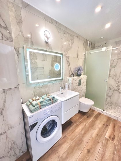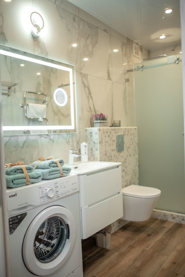 - Фен, шампуни, гель для душа, жидкое мыло в бесконтактном диспенсере, ватные палочки, ватные диски, капсулы для стирки белья, утюг, гладильная доска, сушилка для белья, пылесос и многое др.
