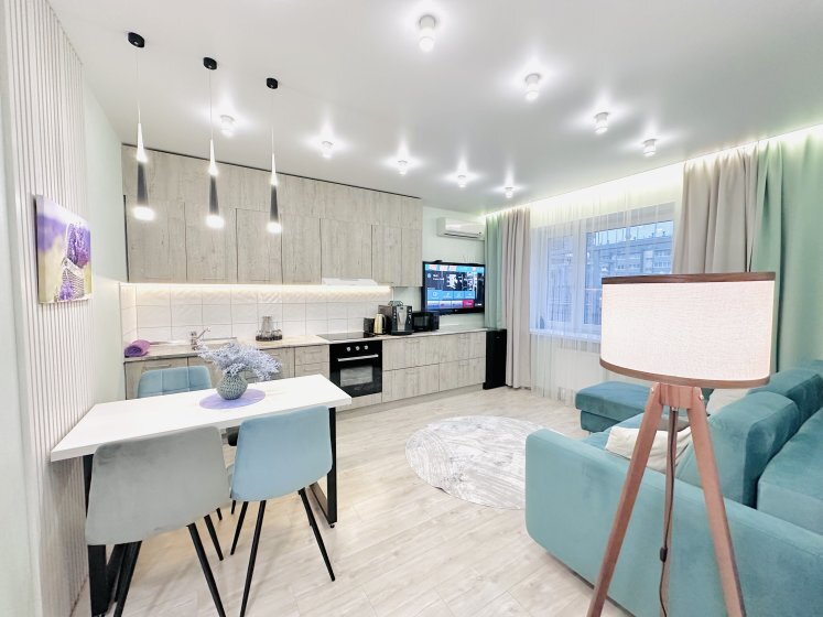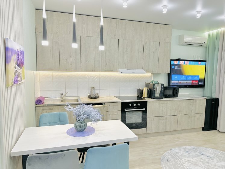 Апартаменты с большой гостиной, кухней, в которой есть все необходимое для комфортного проживания: