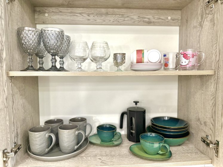 - большая кухня оснащенная всем необходимым для проживания, где все продумано до мелочей:(посудомоечная машина, холодильник, варочная панель, духовка, микроволновка, чайник, современная посуда, необходимая утварь, бокалы, приборы и т.п. ) Кофеварка с заправленным вкусным кофе. Чай, кофе, сахар, конфеты, соль, оливковое масло