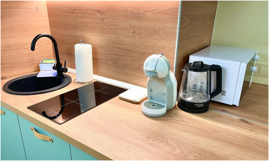 У нас Вы найдете все необходимое для приятного отдыха: удобные кровати, мягкие подушки, просторные душевые и уютные кухни-гостиные, где Вы сможете расслабиться после насыщенного дня. Полностью оборудованная, кухня позволит Вам приготовить свои любимые блюда прямо на месте. Современная техника и стильный дизайн создадут идеальную атмосферу для кулинарных экспериментов и приятных ужинов в кругу семьи и друзей.