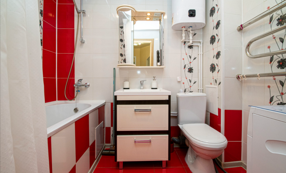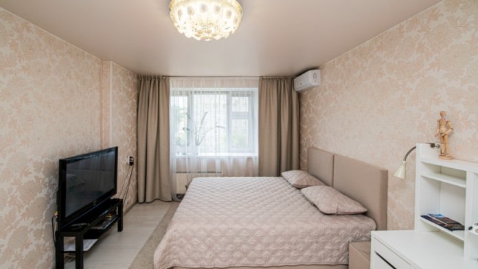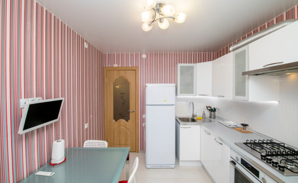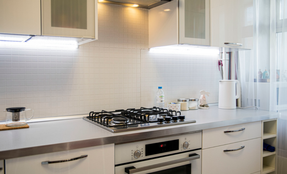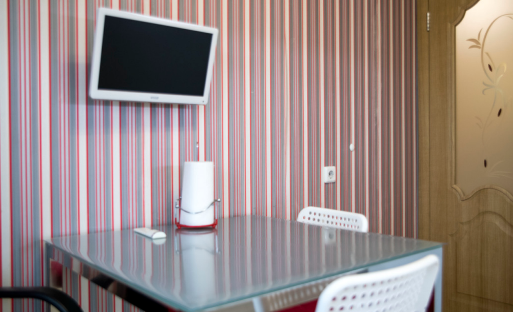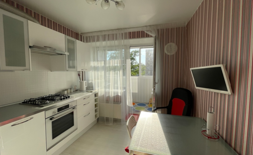 Оснащение квартиры несравнимо выгоднее отельного номера. Есть вся необходимая техника: кондиционер, стиральная и сушильная машина, посудомоечная машина, водонагреватель (на случай отключения горячей воды), холодильник, духовой шкаф, газовая варочная панель, микроволновка, чайник, утюг, гладильная доска, теплый пол в санузле, фен.