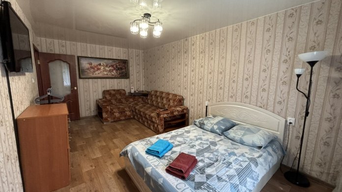 Однокомнатная квартира с комфортной двуспальной кроватью с ортопедическим матрасом и уютным диваном-кроватью