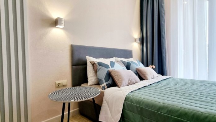 В квартире могут разместиться максимум гостей 5, спальных мест - двуспальная кровать, диван-кровать, кресло-кровать. В квартире-студии есть все для комфортного проживания: панорамные окна в пол с видом на город-много солнца и света, WI-FI 200 мбит/с, Смарт ТВ с подпиской Кион, холодильник, стиральная машина, кондиционер, фен, а также постельное белье, полотенца, кофе, чай и т.д