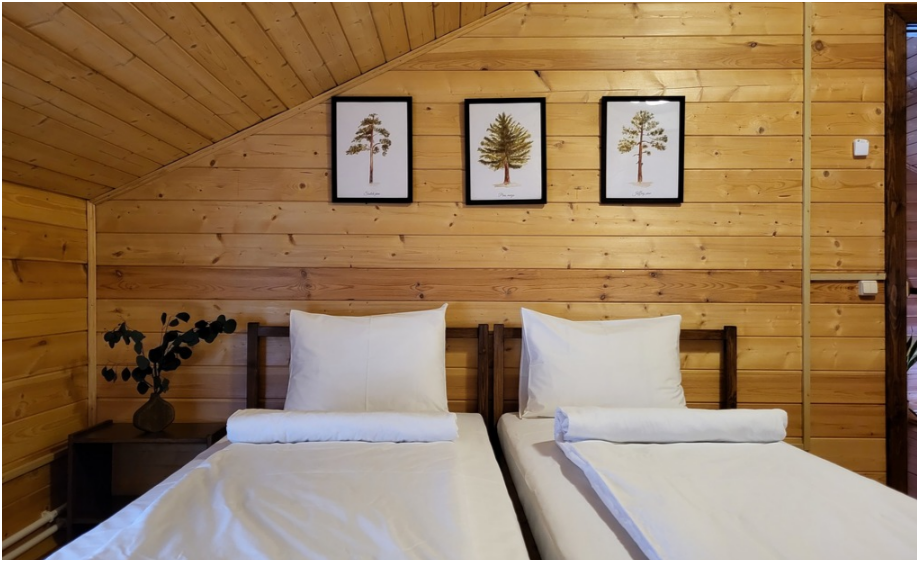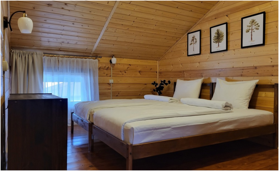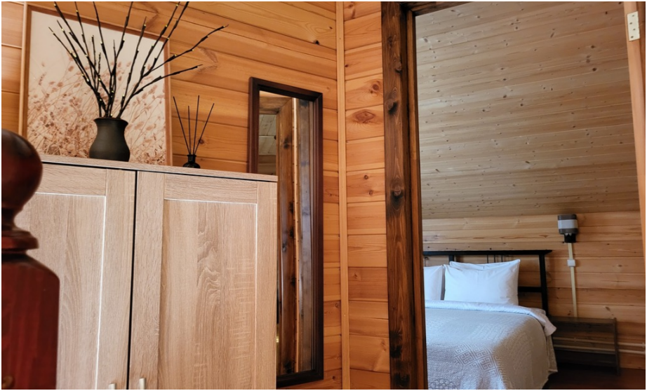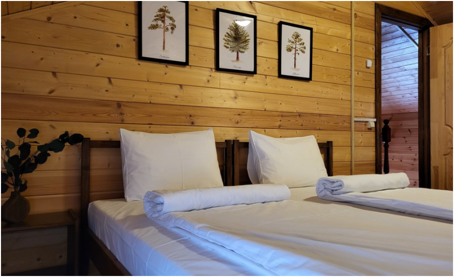 Коттеджи построены из хвойных пород дерева, хранящего тонкий аромат соснового леса.