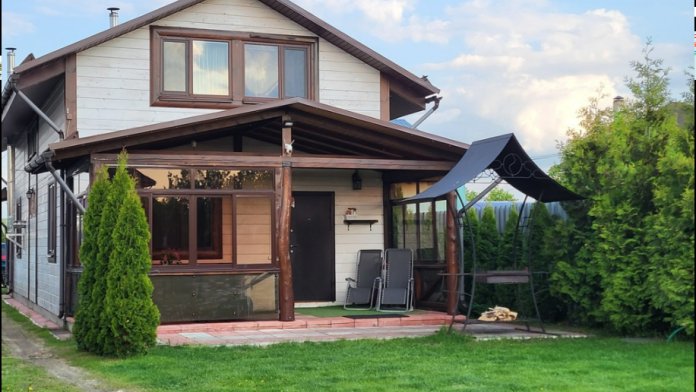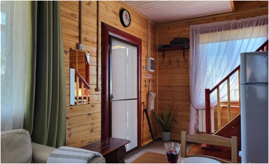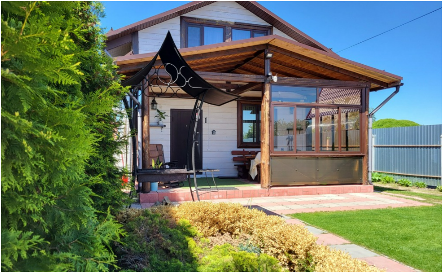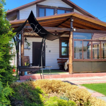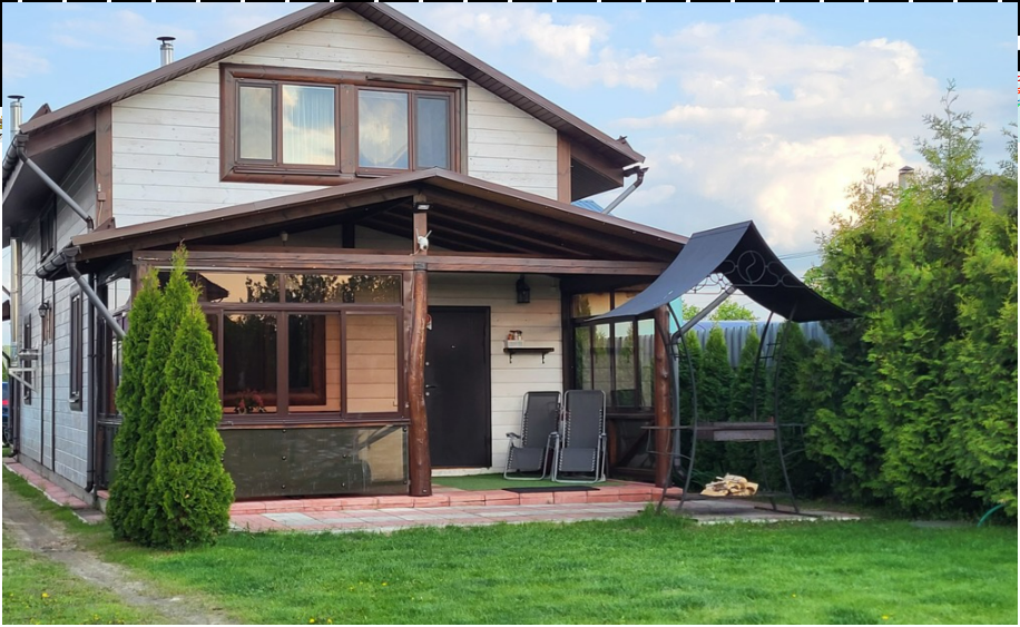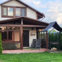 На участке 8 соток расположен дом-дуплекс (от английского «двойной»). Это дом для проживания двух семей, разделенный на 2 части. Каждая из семей получает собственную часть дома с отдельным входом, личной парковкой и зоной отдыха. В каждом из домов может разместиться семья численностью до 7 человек. Двухэтажный коттедж имеет собственную парковку для 2 авто, застекленную террасу с мебелью, мангальную зону. На первом этаже находится кухня-гостиная, сауна, душевая и санузел. Диван раскладывается в двуспальное место. На втором этаже 2 спальни с двуспальной кроватью и тремя односпальными. По предварительному запросу для детей до 3-х лет бесплатно предоставляем детскую кроватку-манеж. Дом укомплектован всеми необходимыми удобствами для комфортного проживания. У нас белоснежное постельное белье и полотенца высокого качества. Пользование сауной бесплатно и не ограничено по времени. Помещение парной растапливается дровами за 40-50 минут. Приветственная вязанка дров в подарок.