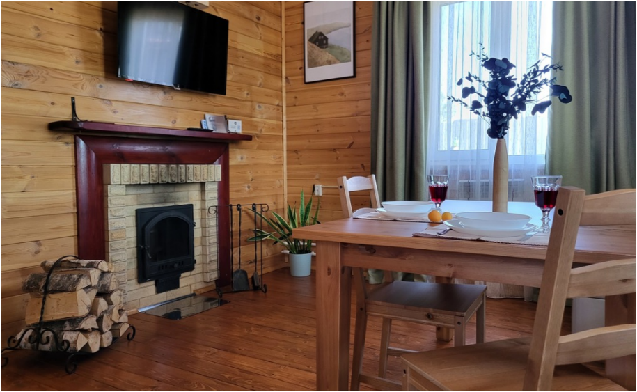 Особенность наших коттеджей это дровяные сауны, которые расположены прямо в домах. Вам не надо одеваться, обуваться и выходить из дома, чтобы посетить баню. Растапливаете дровами камин и через 40 минут наслаждаетесь легким паром! Будьте уверены в гигиене помещения, всё тщательно обрабатывается после каждого отъезда.