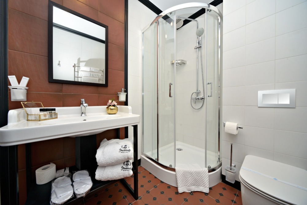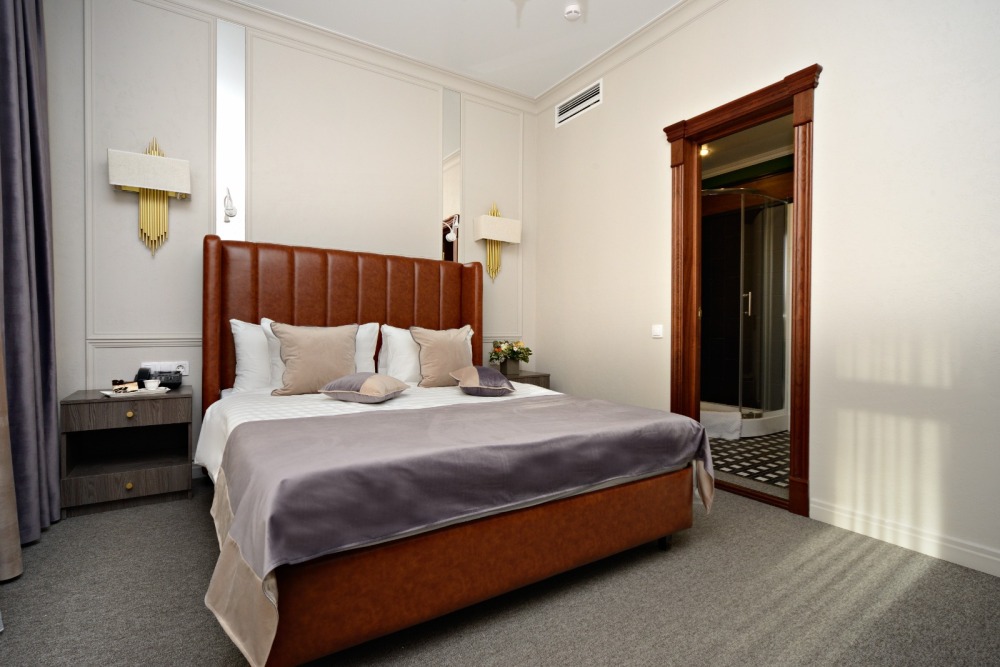 Номер в нежных тонах площадью 22 м² и кроватью king size в самом центре Москвы. В номере есть кондиционер, чайник, холодильник с мини баром, ванные принадлежности и тапочки, а также есть Яндекс колонка Алиса. Специально для наших гостей в зоне мини кафе есть чай, кофе и вода. Стойка ресепшена работает круглосуточно.