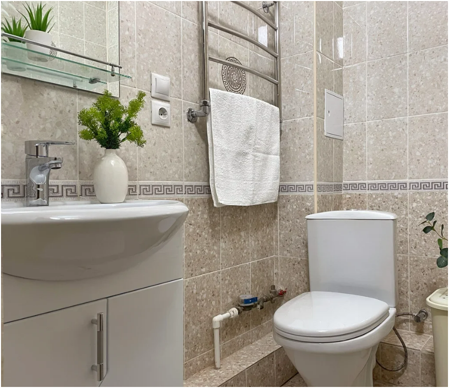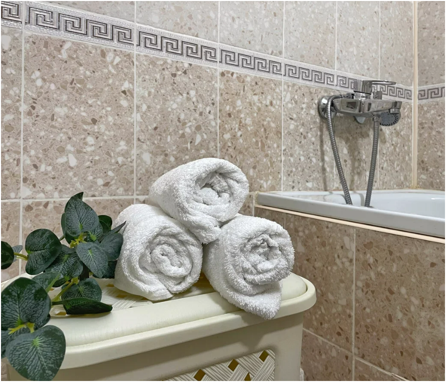 - ванная комната и средства личной гигиены (гель для душа, шампунь, мыло)